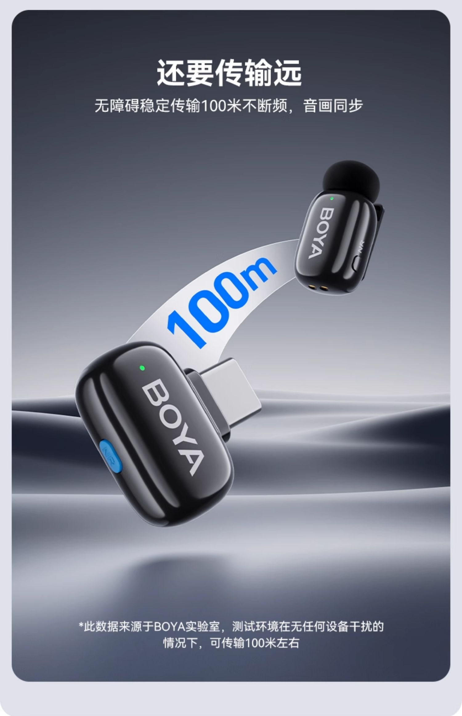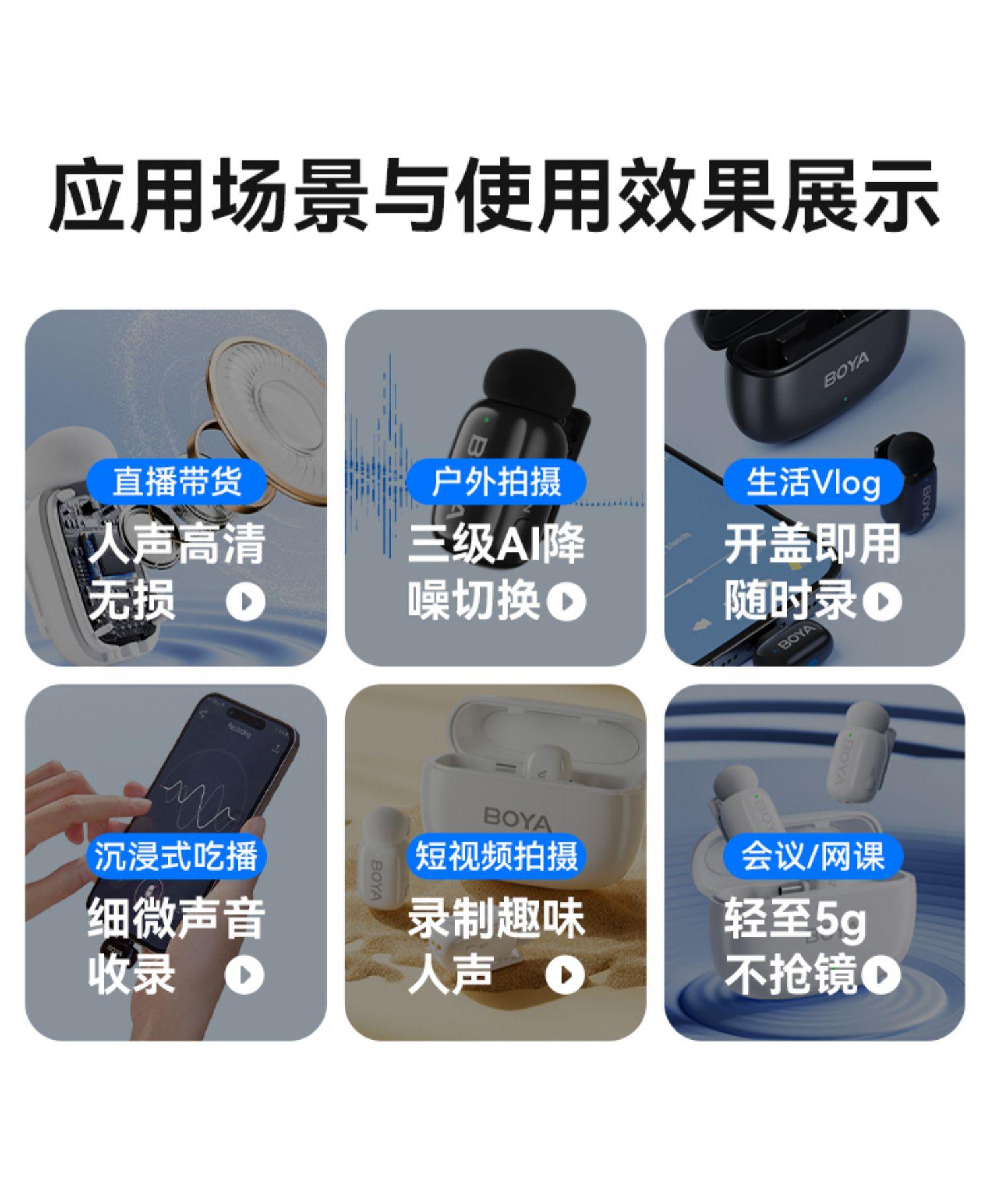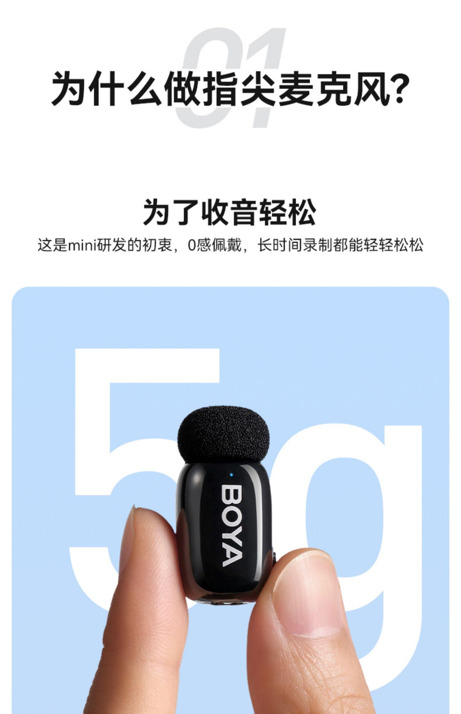 Micrófono de dedo mini Boya, micrófono inalámbrico con clip para collar, micrófono de radio con reducción de ruido para grabación de entrevistas en vivo
