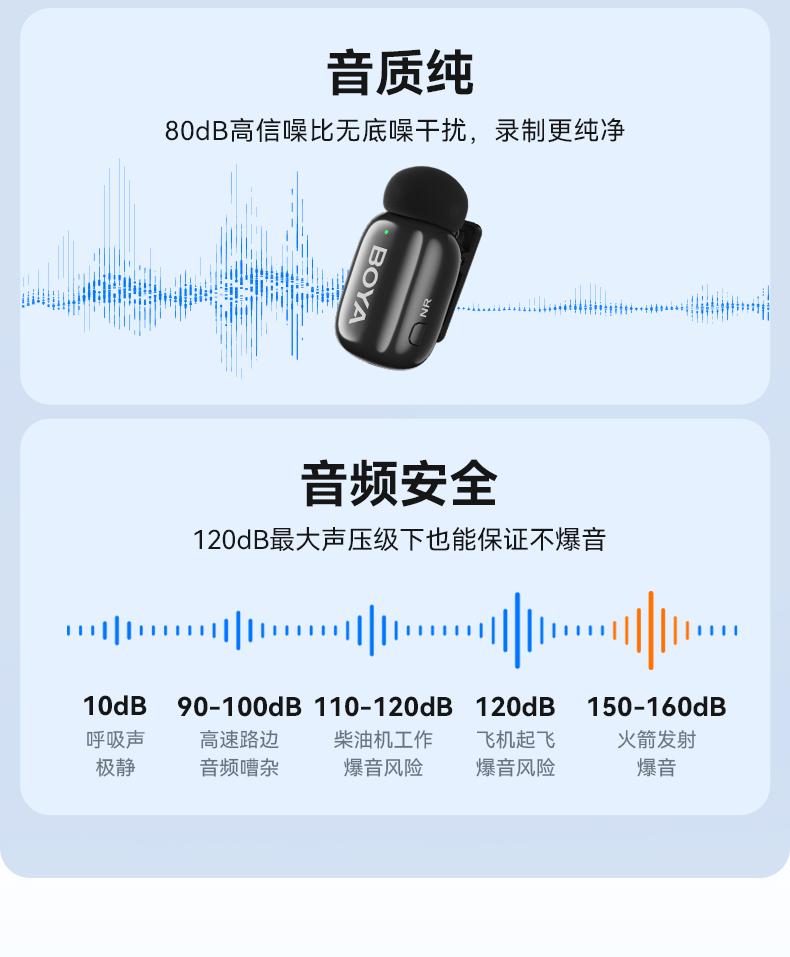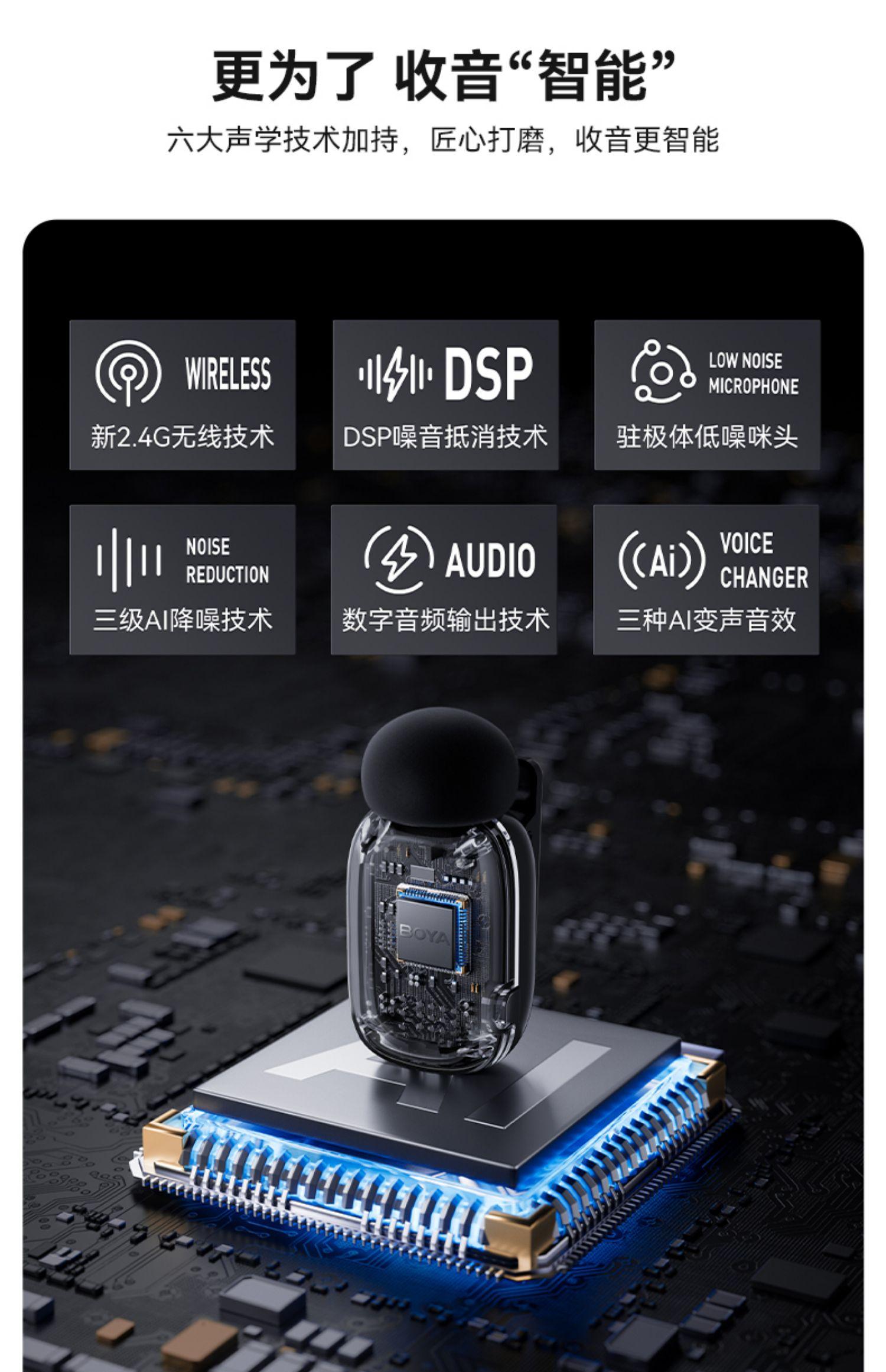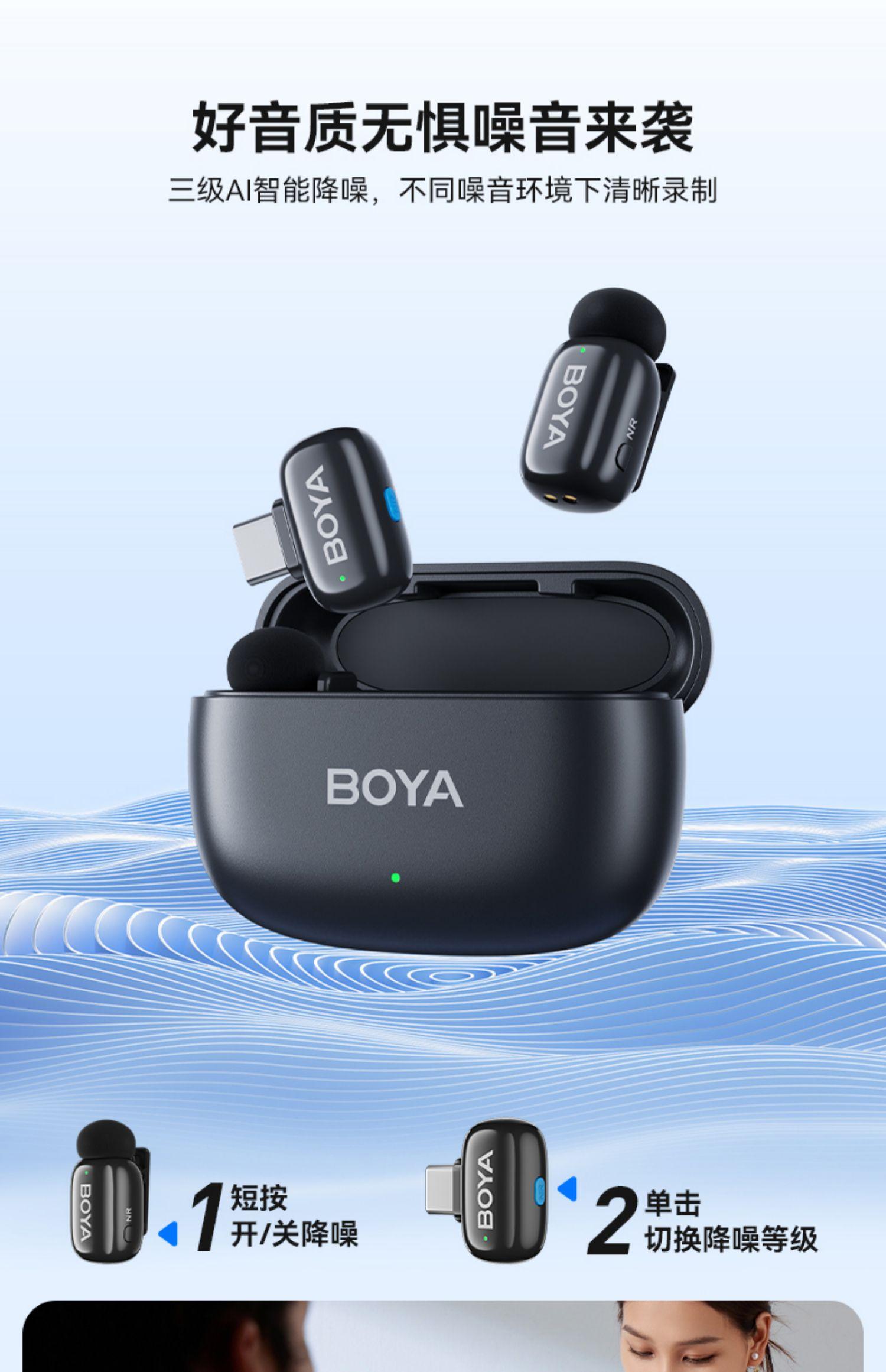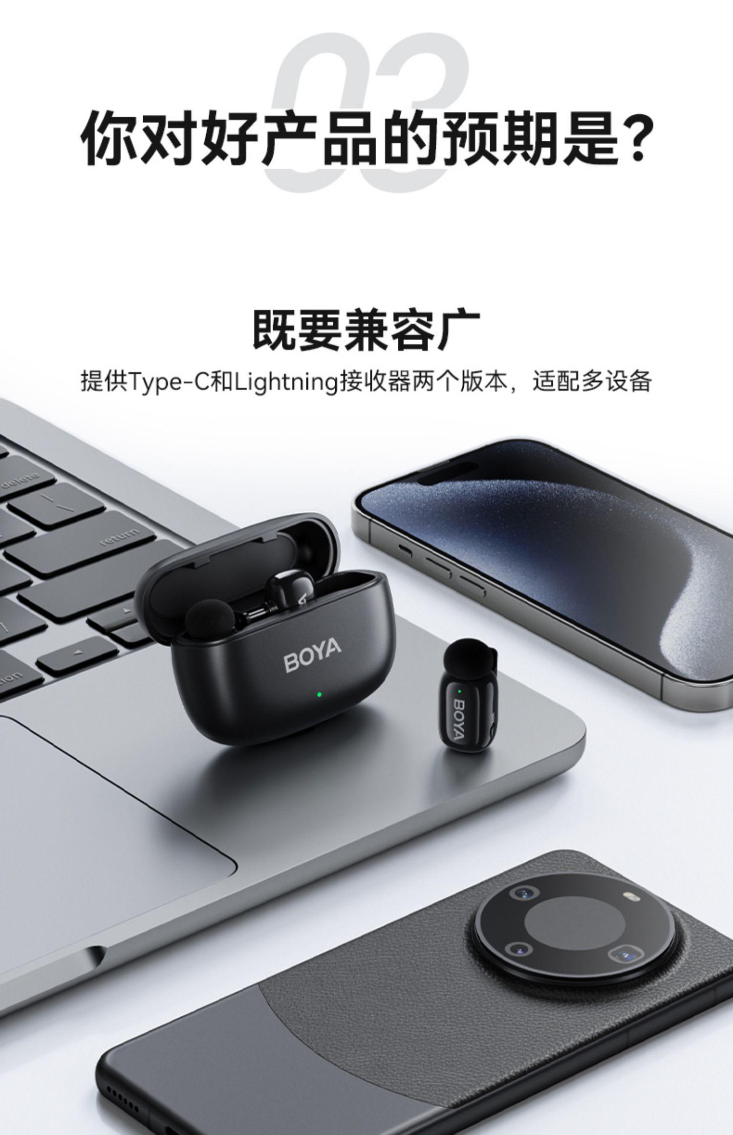 Micrófono de dedo mini Boya, micrófono inalámbrico con clip para collar, micrófono de radio con reducción de ruido para grabación de entrevistas en vivo