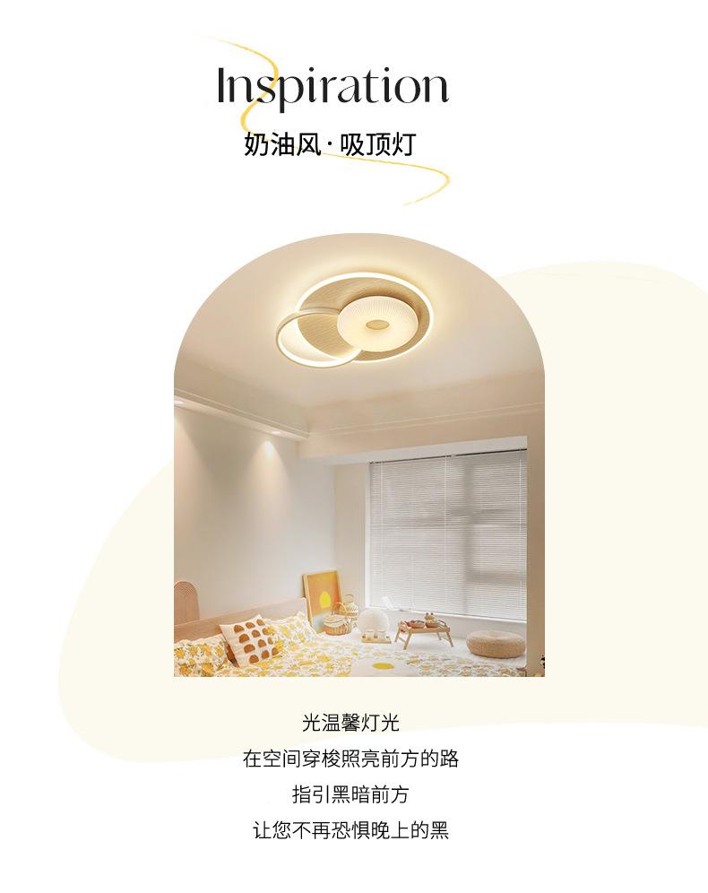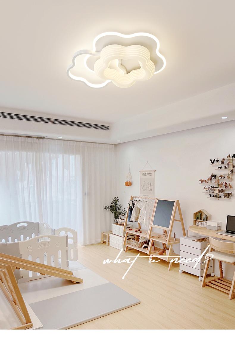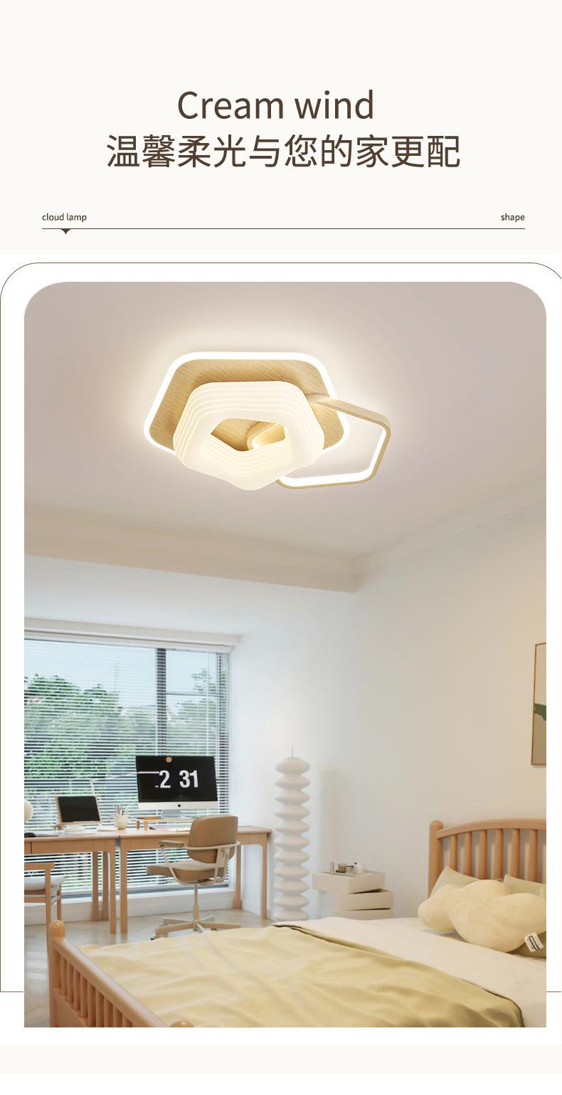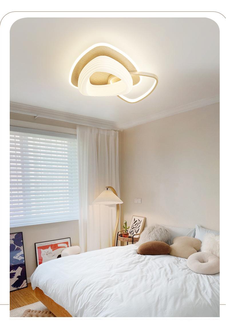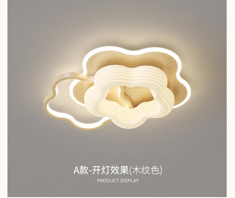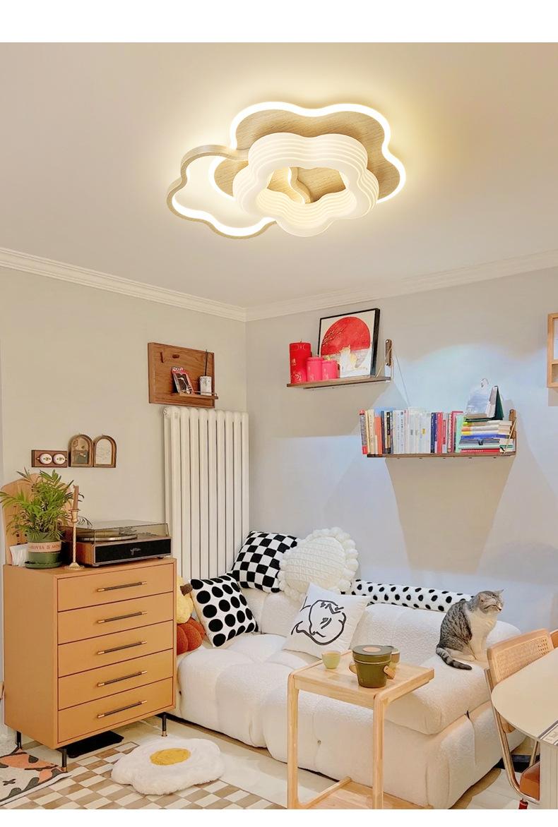 Espectro Completo Moderno Minimalista Color Crema Madera Lámpara de Dormitorio Escandinava Cálida Moda Elegante Flor Lámpara de Techo para Sala de Estudio