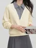Camiseta de manga larga con cuello en V para mujer, corta, ajustada, de manga larga, para otoño, 2023, sexy, con cuello en V y clavícula, para estudiantes.