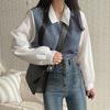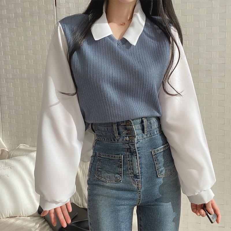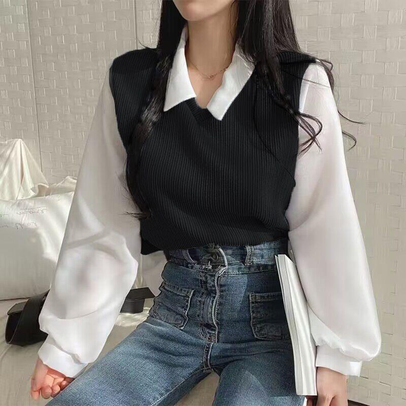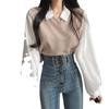 Camiseta de manga corta de dos piezas con cuello POLO de color contrastante de estilo universitario para mujer, estilo holgado, informal y versátil, para verano de 2023