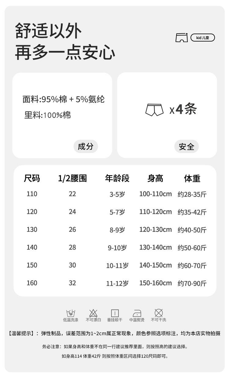 Pack de 4 calzoncillos bóxer de algodón con dibujos animados para niños y niñas (primavera y verano 2025)