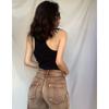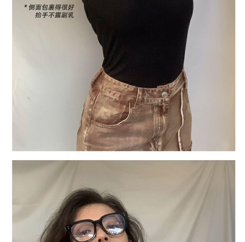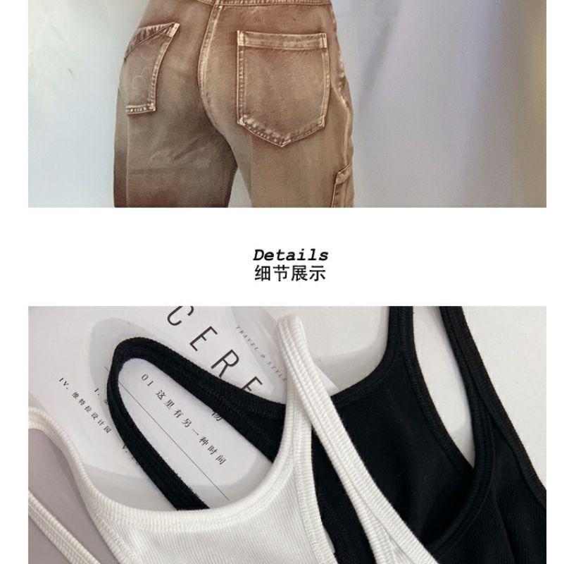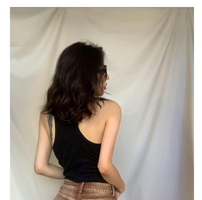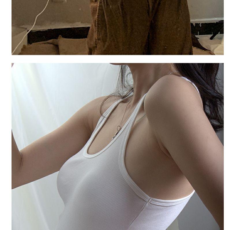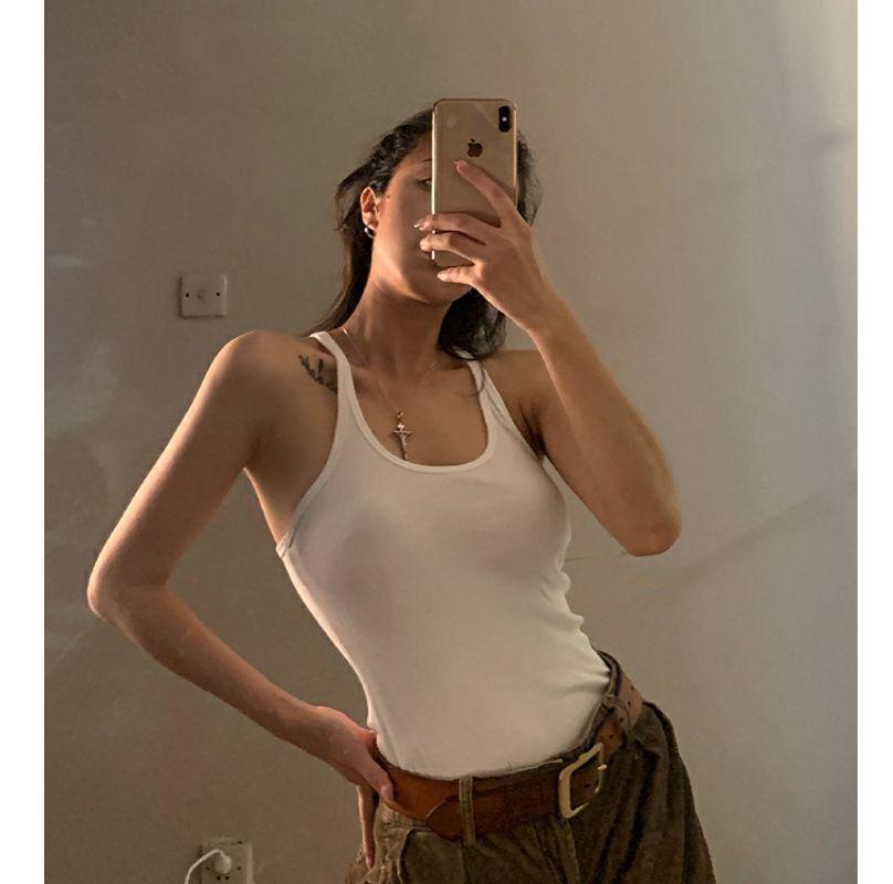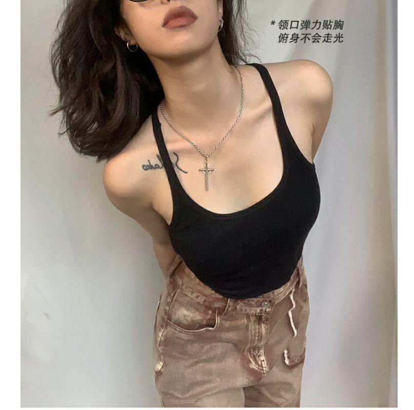 Verano nuevo deseo puro camisola de tirantes finos para mujer ajuste americano ceñido en forma de I cuello interior cuello bajo clavícula para usar exterior chica hot