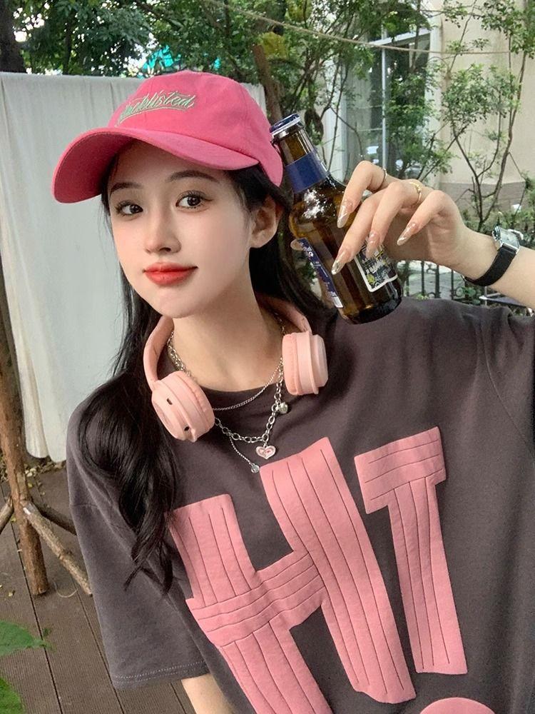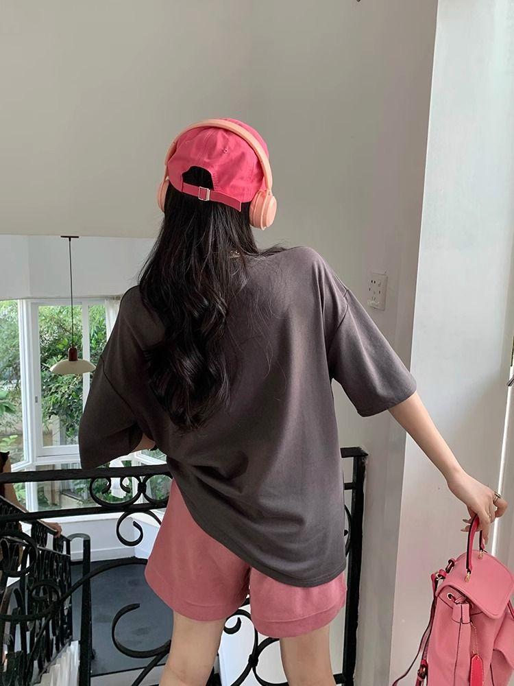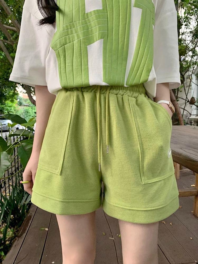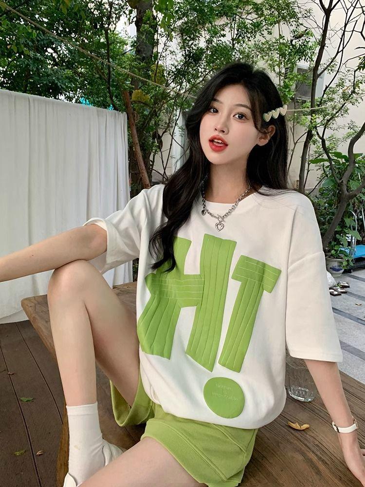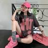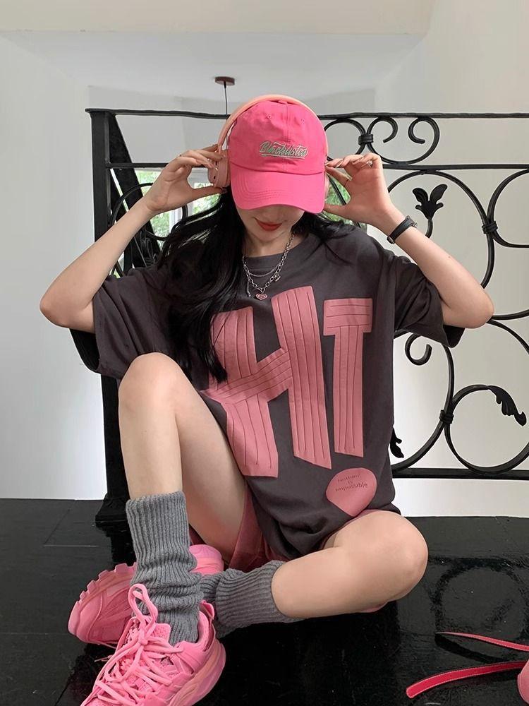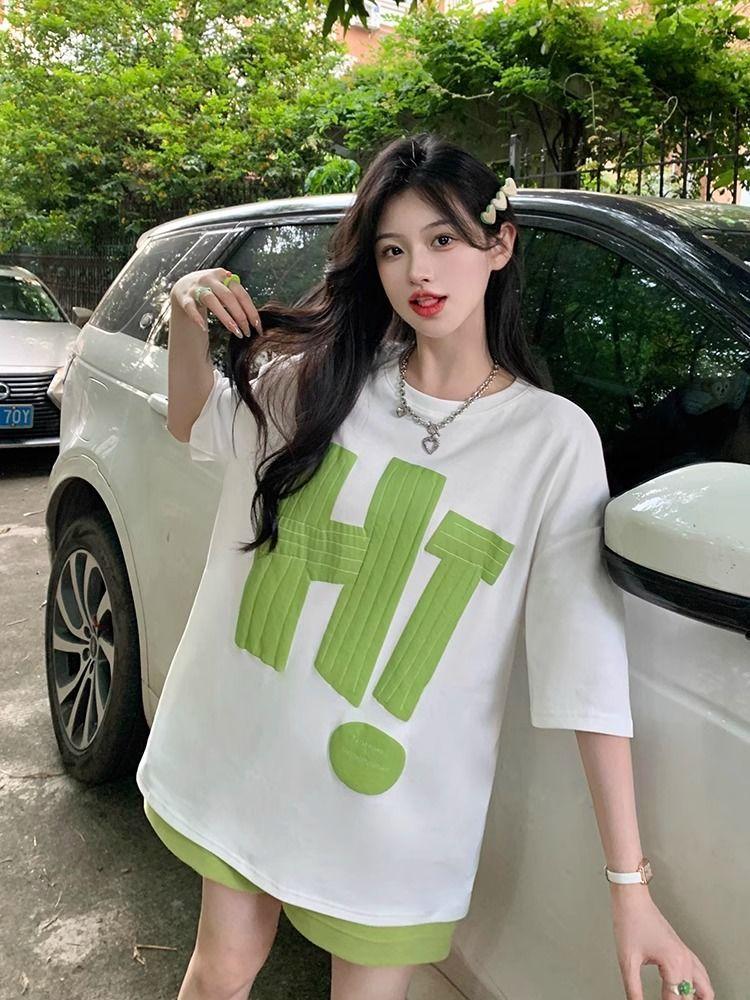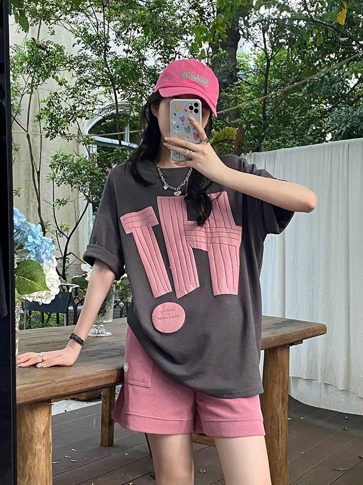 Verano 2024 Deportes Ocio Internet Popular Novedad Traje Mujer Pantalones Cortos Anchos Moda Estampado Manga Corta Conjunto Americano de Dos Piezas