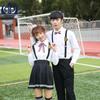 Men's White Long Sleeve + Black Pants + Red and Blue Tie + Strap 6XL