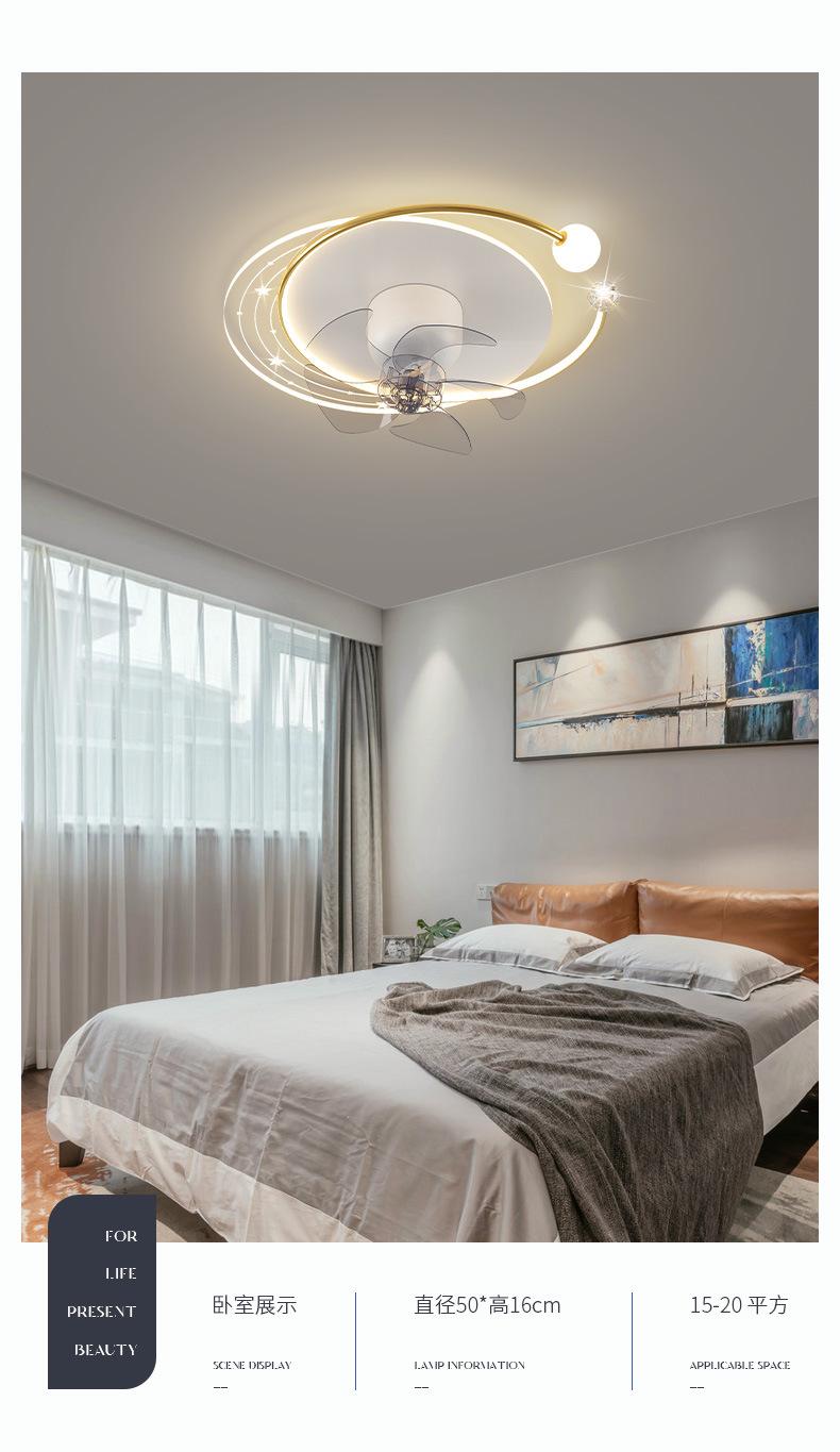 Lámpara de ventilador de techo para dormitorio 2025 nueva nórdica silenciosa simple moderna sala de restaurante redonda