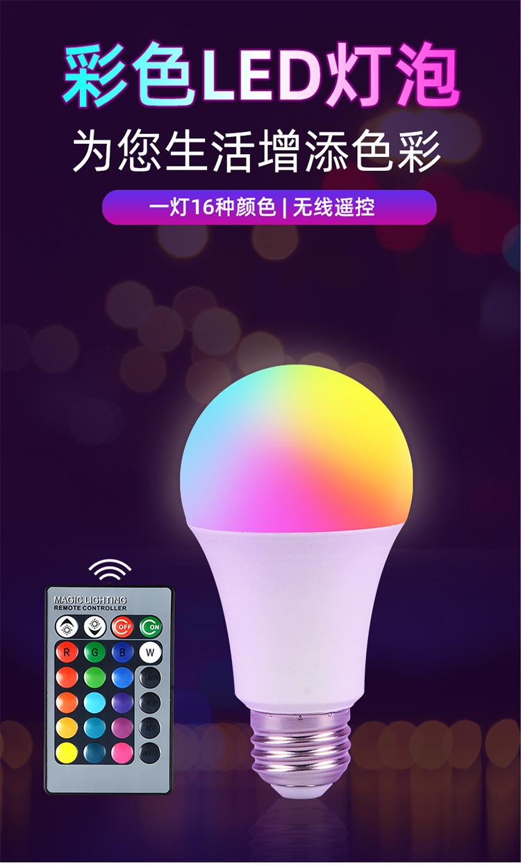 Bombilla LED colorida transfronteriza de presión ancha, bombilla de rosca E27, bombilla de ambiente con control remoto inalámbrico y atenuación colorida RGB
