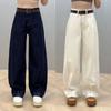 Pantalones vaqueros glutinosos de pierna ancha para mujer, cintura alta, holgados, con caída recta, deportivos casuales, pantalones finos para trapear, verano