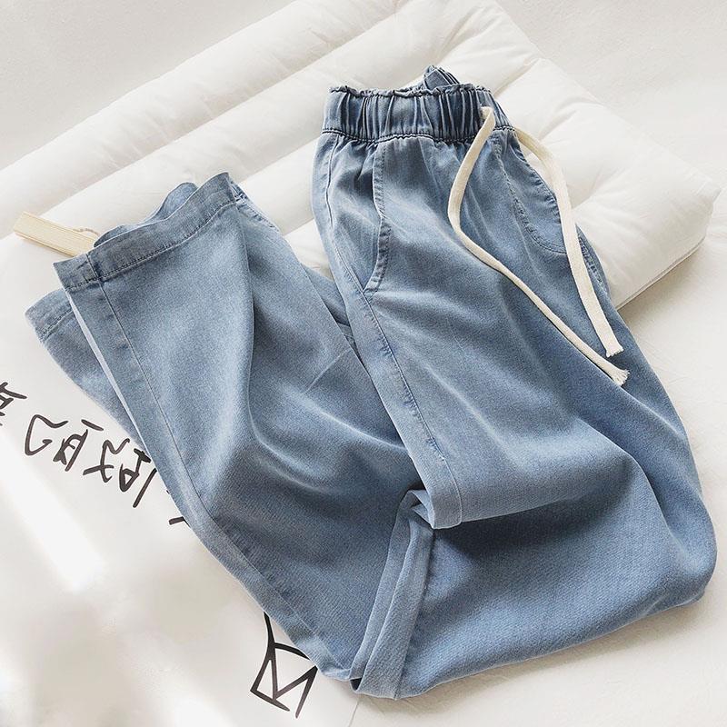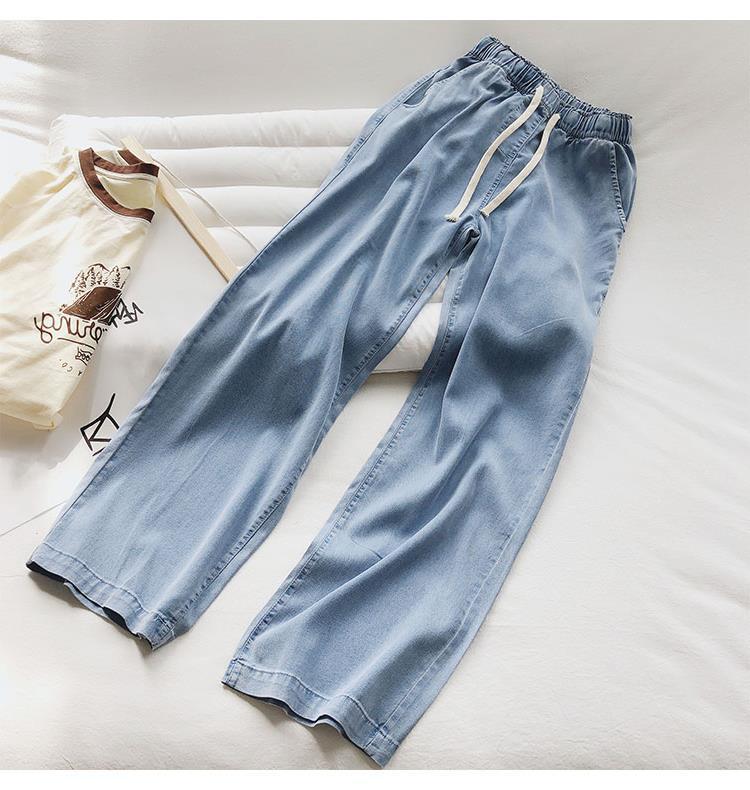 Pantalones vaqueros de pierna ancha suaves y pegajosos para mujer, cintura alta, holgados, con caída recta, deportivos casuales, pantalones finos de barrido, verano