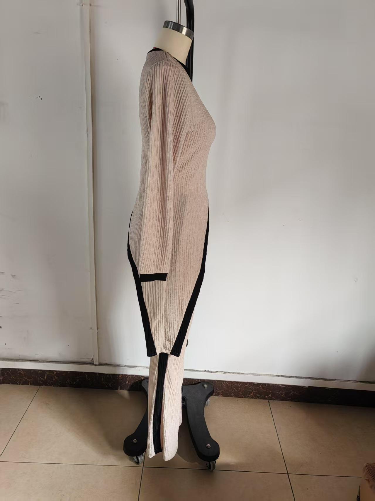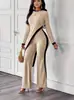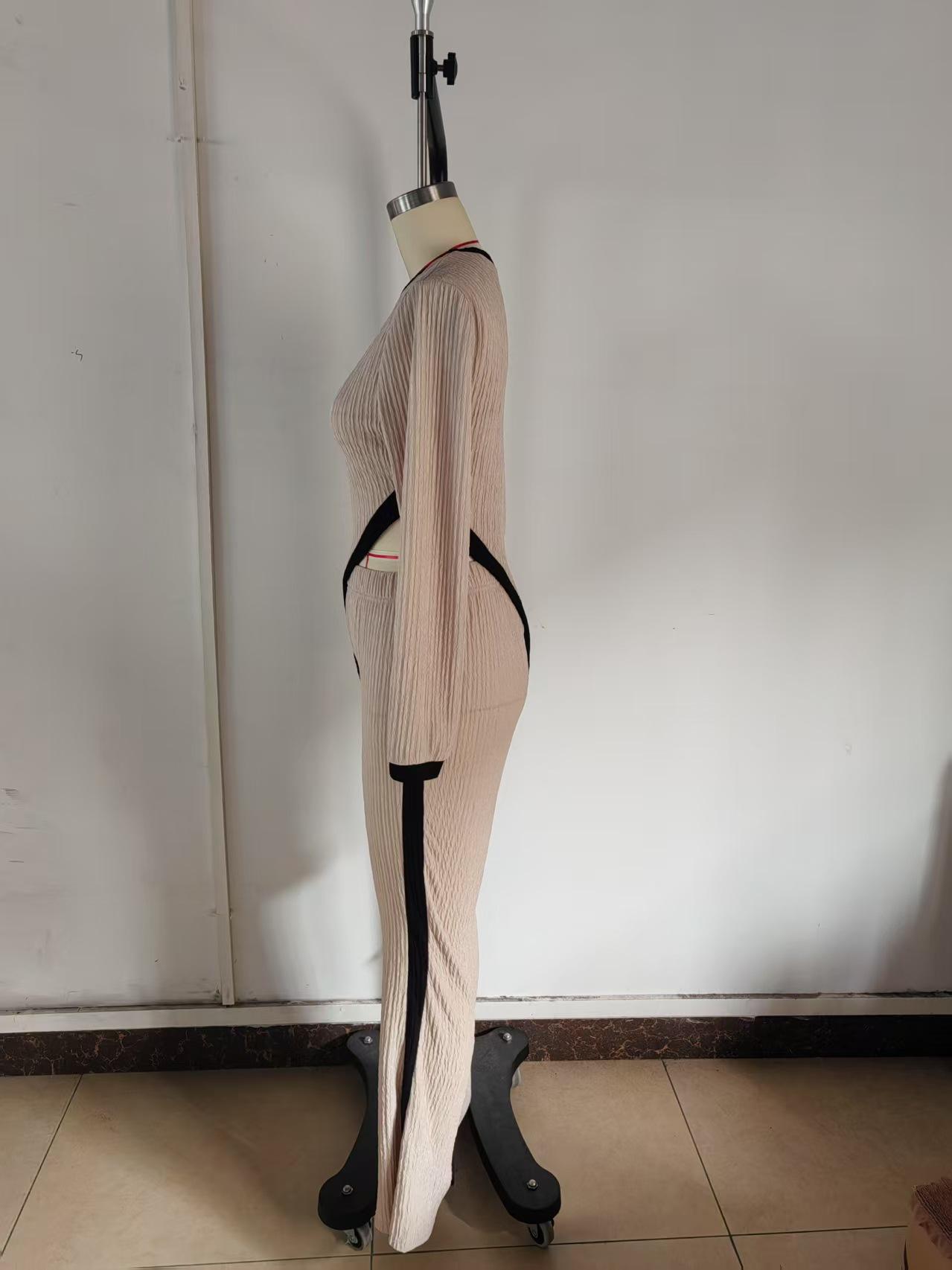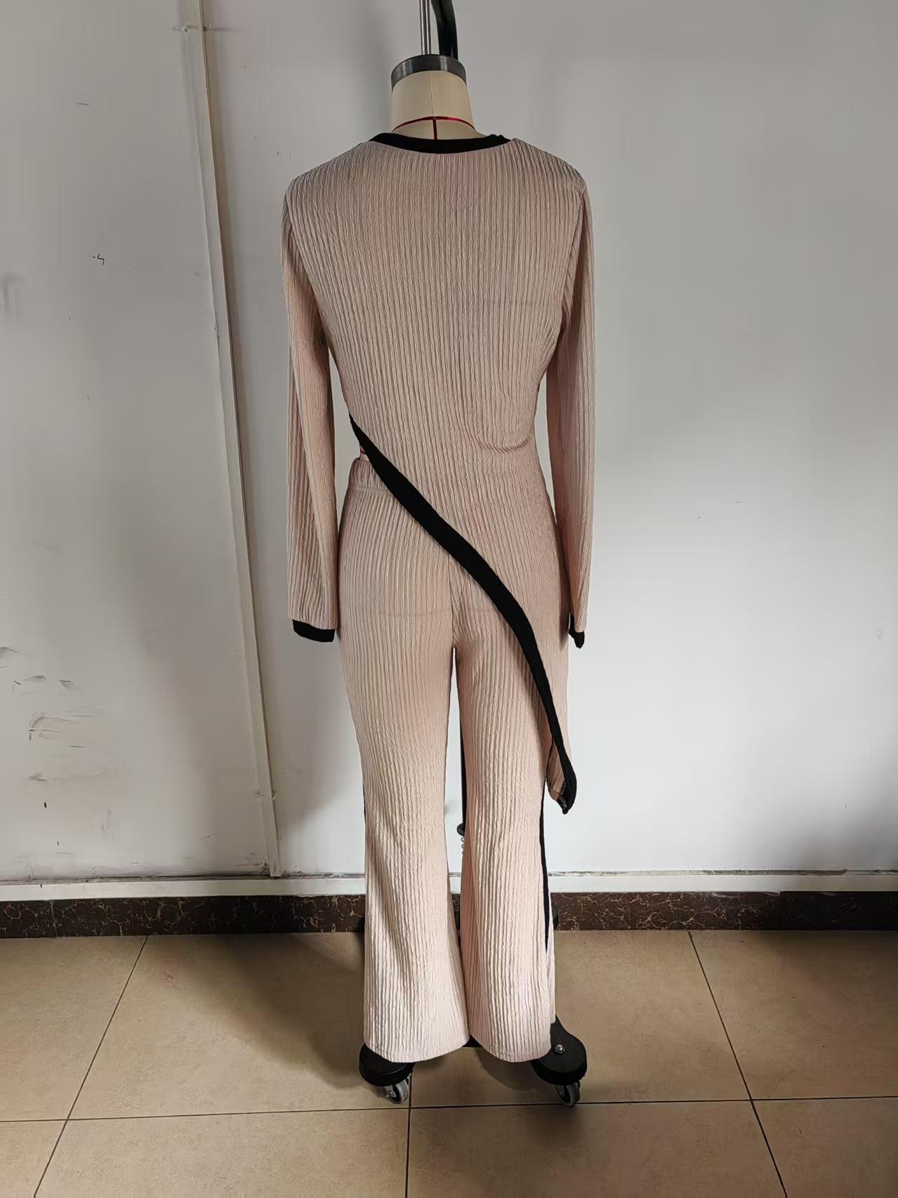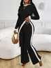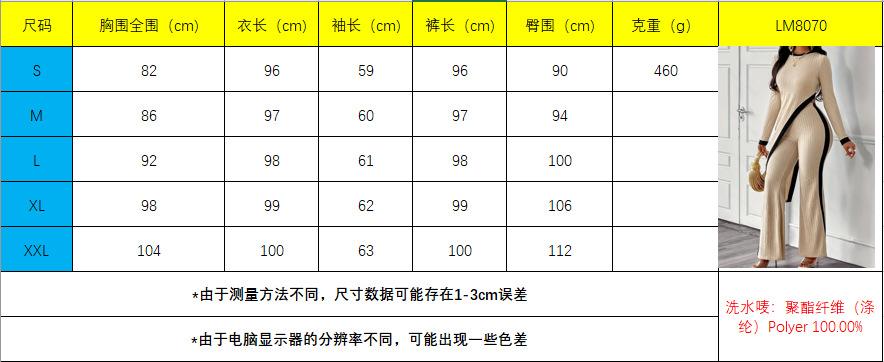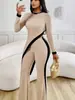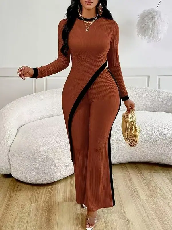 Europa y Estados Unidos Amazon 2025 otoño transfronterizo nueva moda para mujer manga larga contraste de color abertura camiseta costuras pantalones mujer