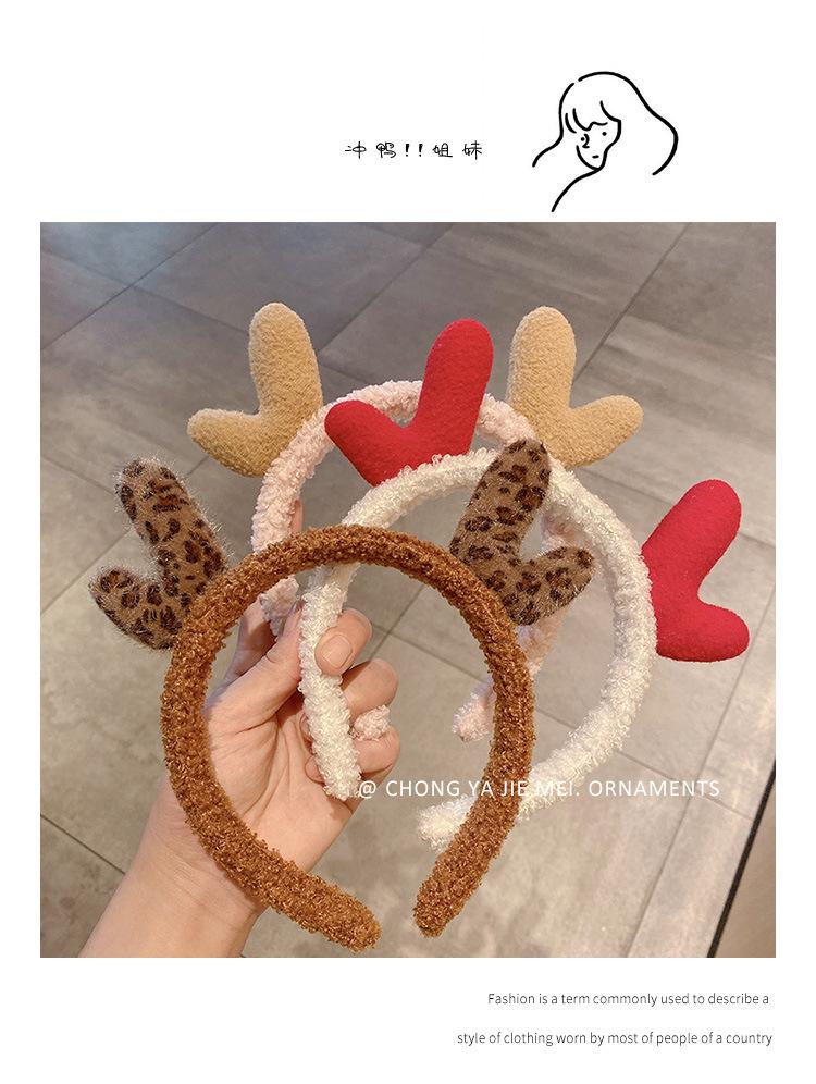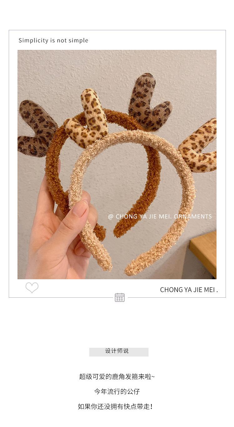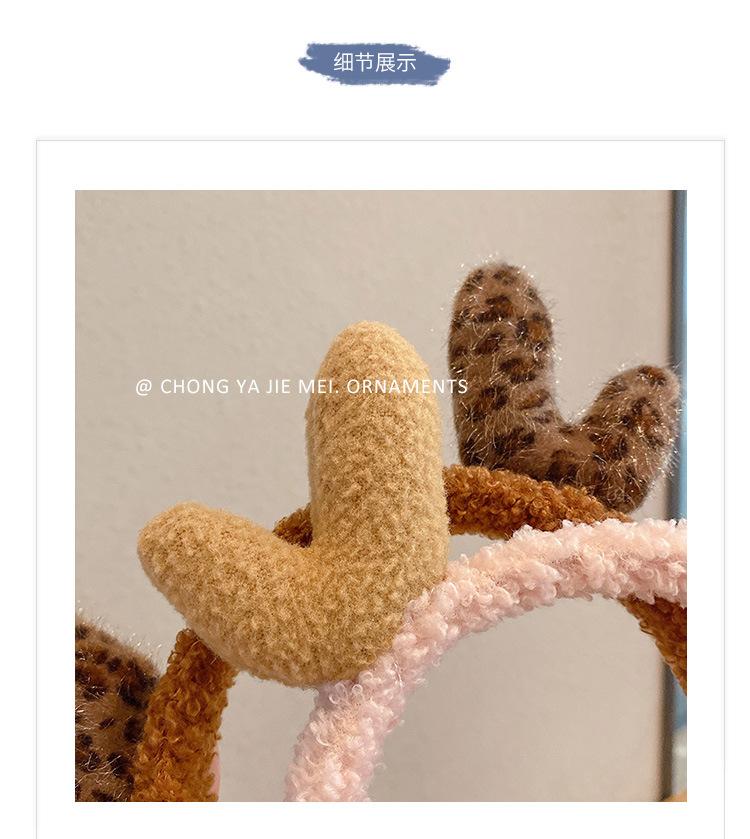 Diadema Versátil y Linda con Estampado de Leopardo y Astas para Mujer, Diadema para Lavar la Cara, Diadema Navideña, Accesorio para el Cabello de Peluche
