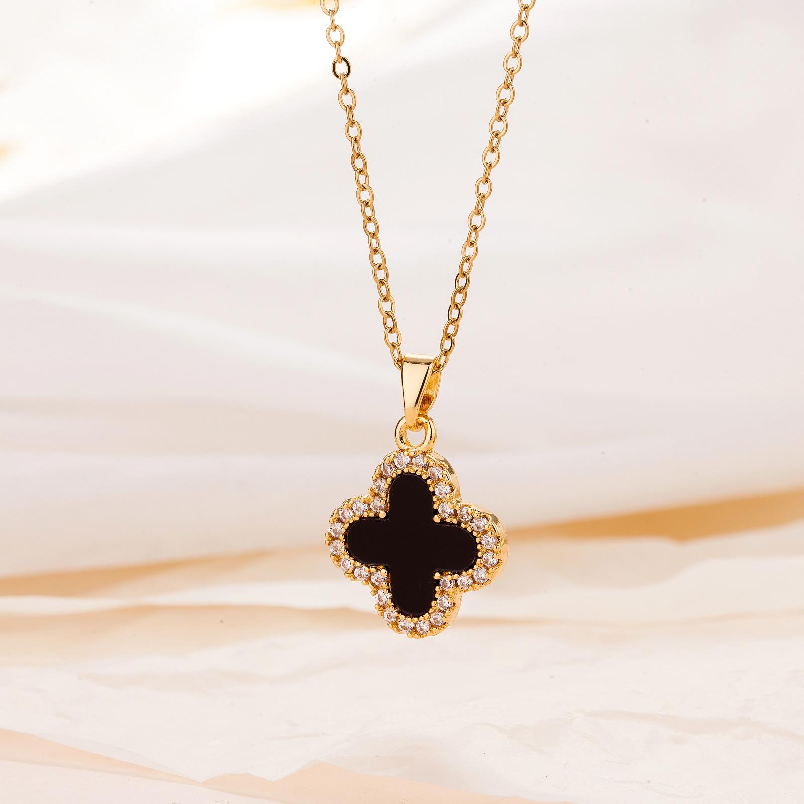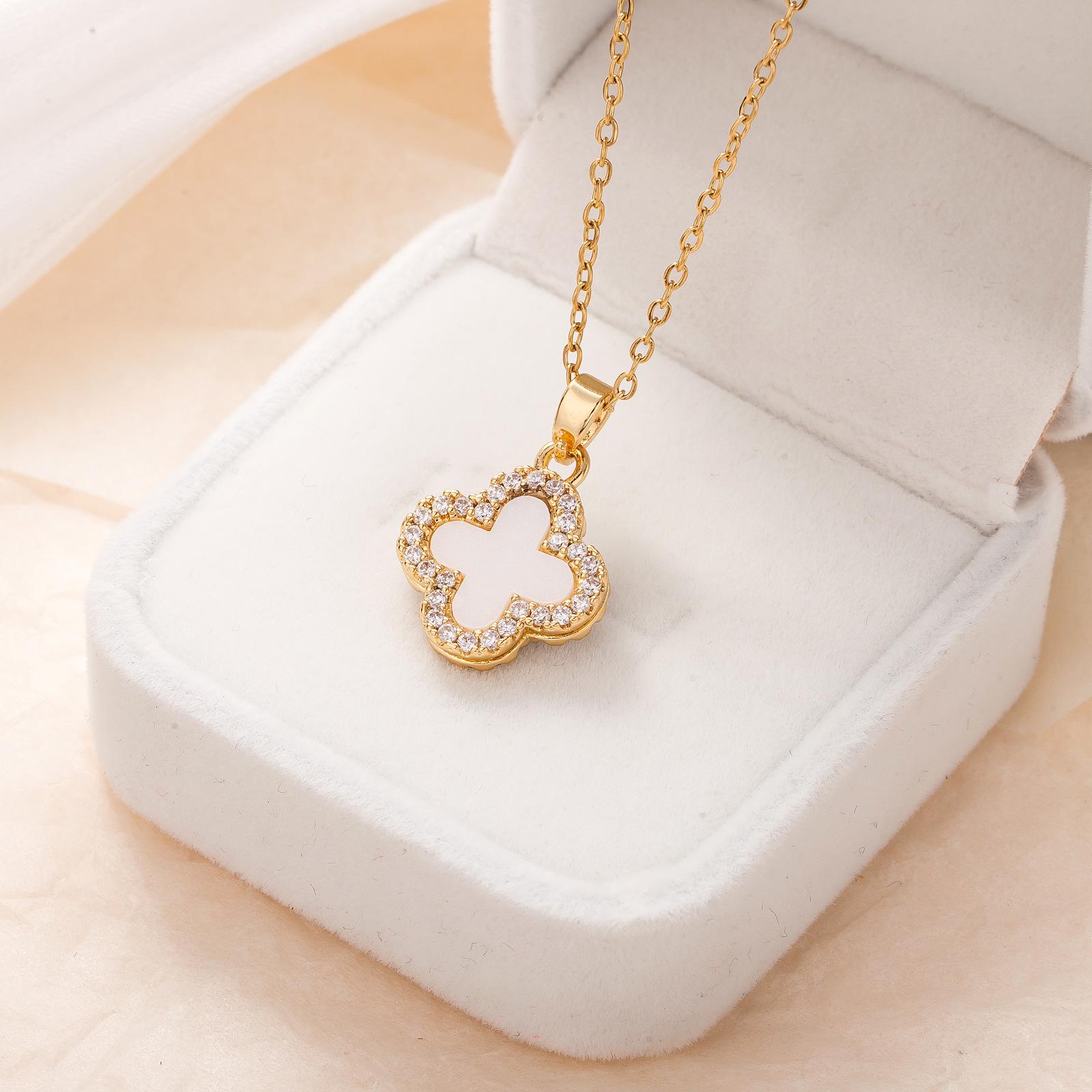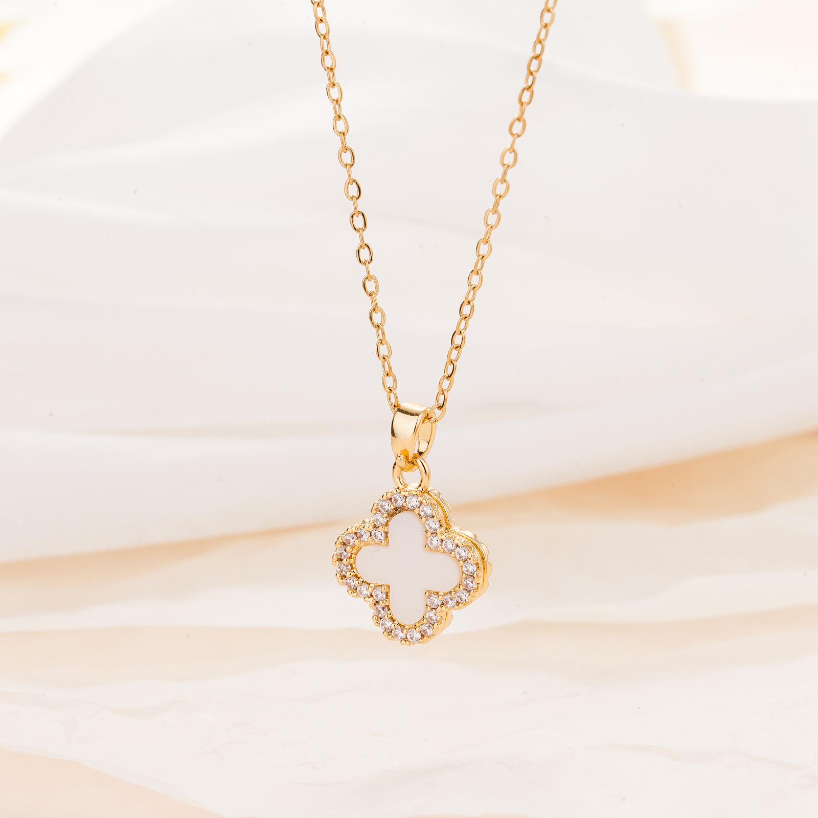 TOHM - Collar con colgante de trébol de cuatro hojas electrochapado en oro de 18 quilates, estilo elegante, para mujer, cadena de clavícula con estilo combinable.