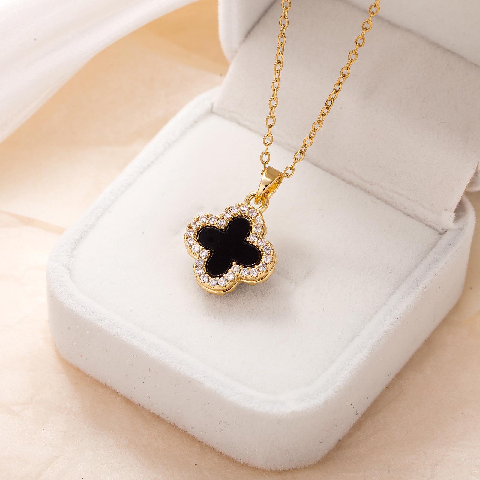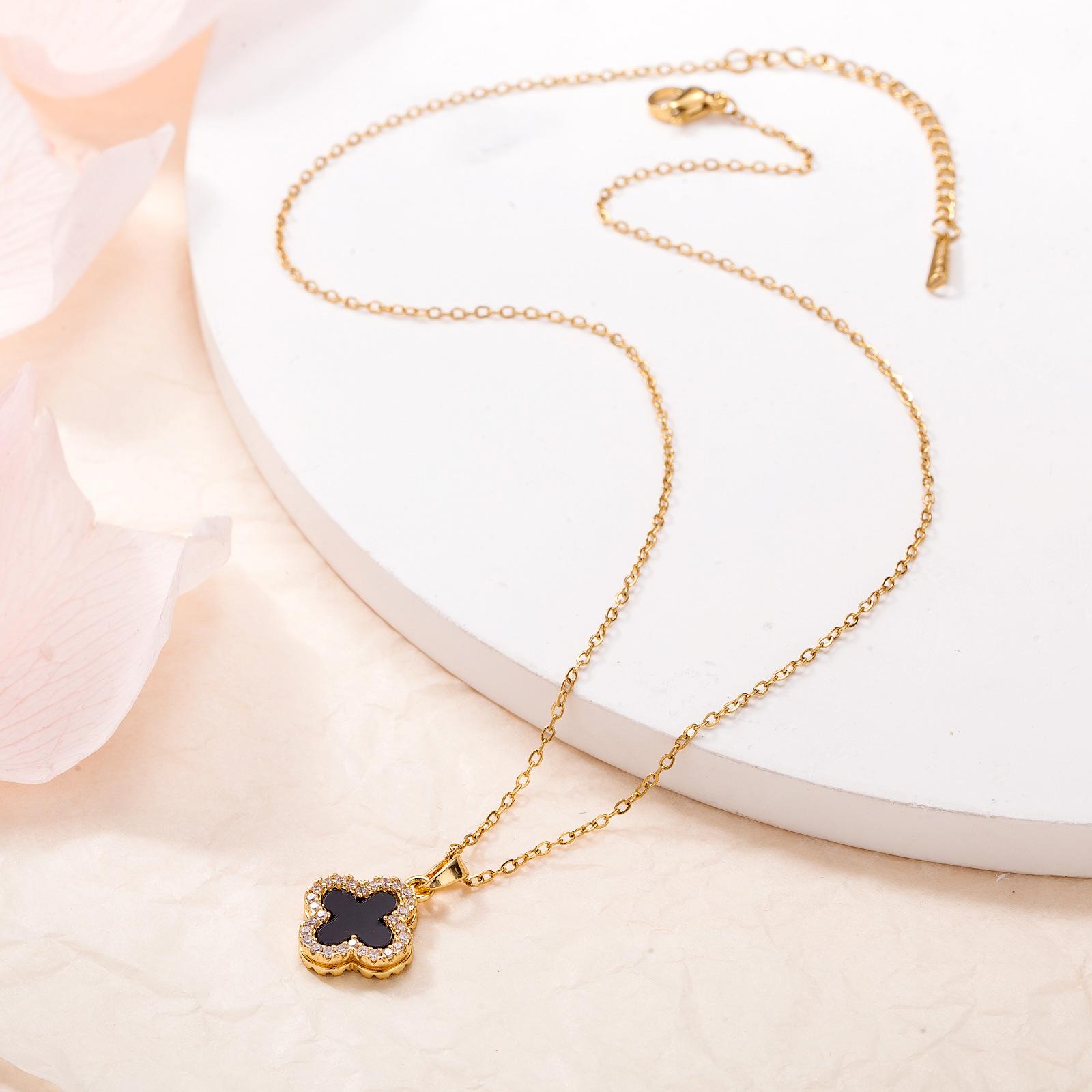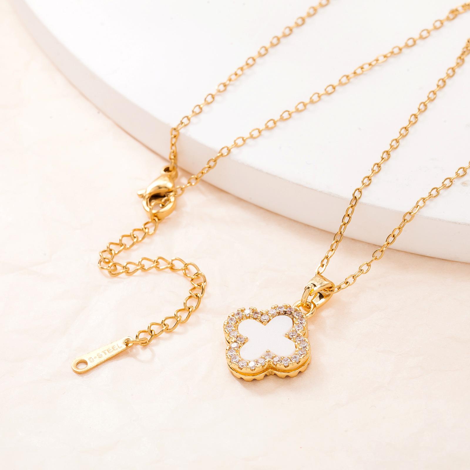 TOHM - Collar con colgante de trébol de cuatro hojas electrochapado en oro de 18 quilates, estilo elegante, para mujer, cadena de clavícula con estilo combinable.