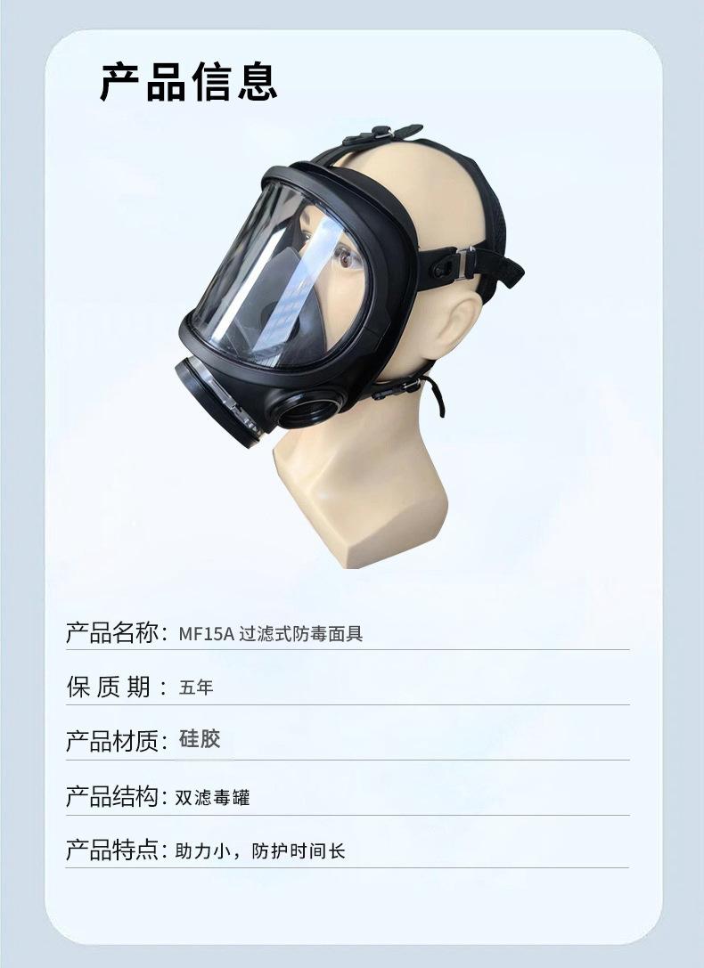 Máscara de gas de doble cartucho, máscara de gas de gran campo de visión, filtro autocebante, máscara de gas MF15