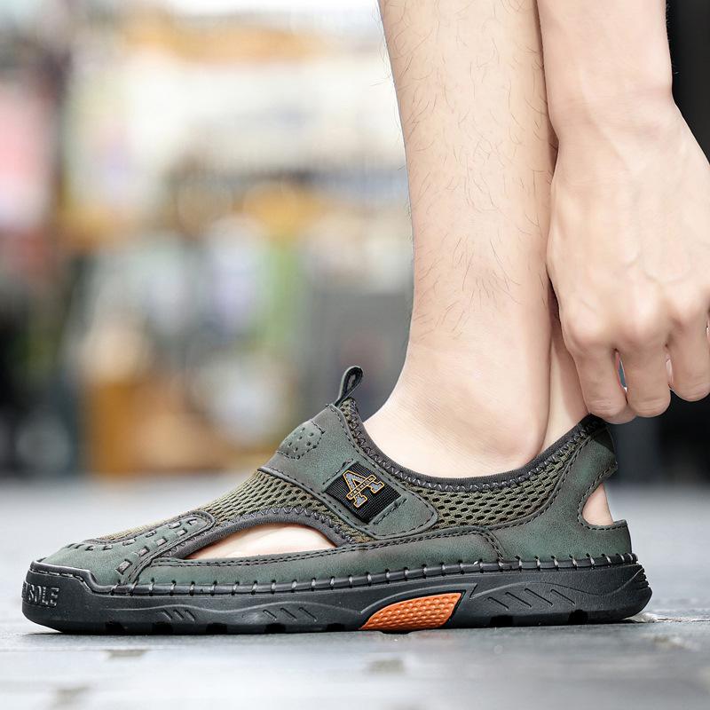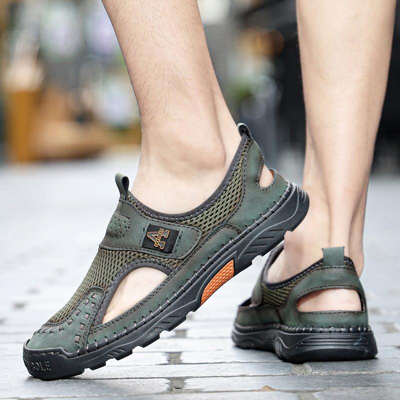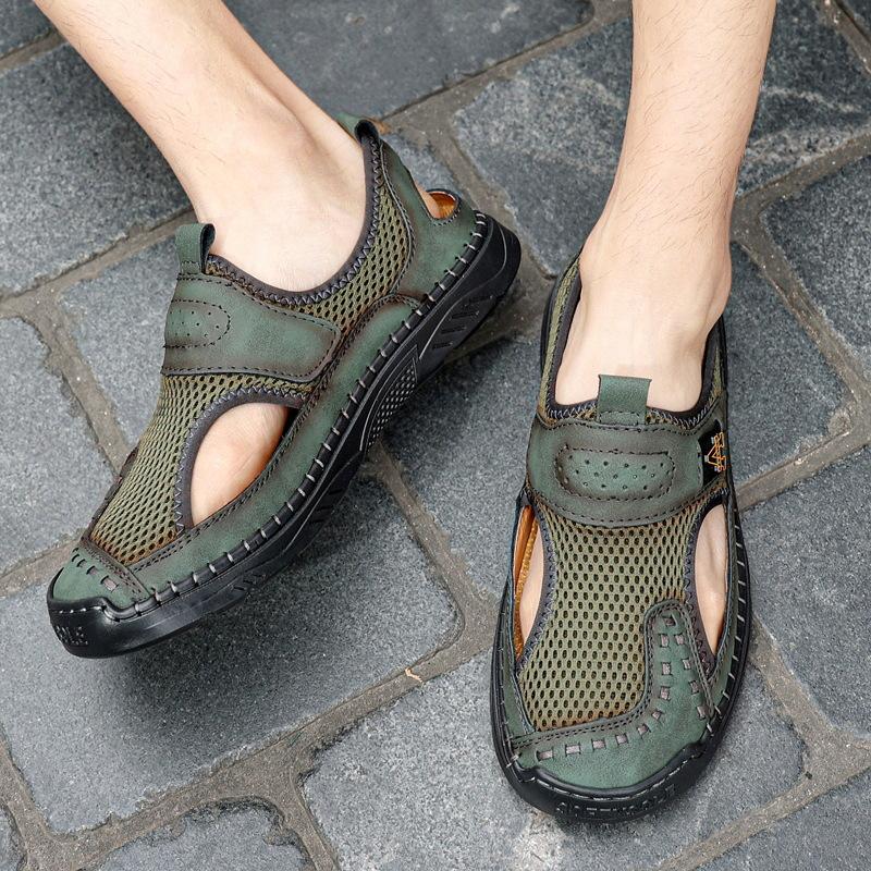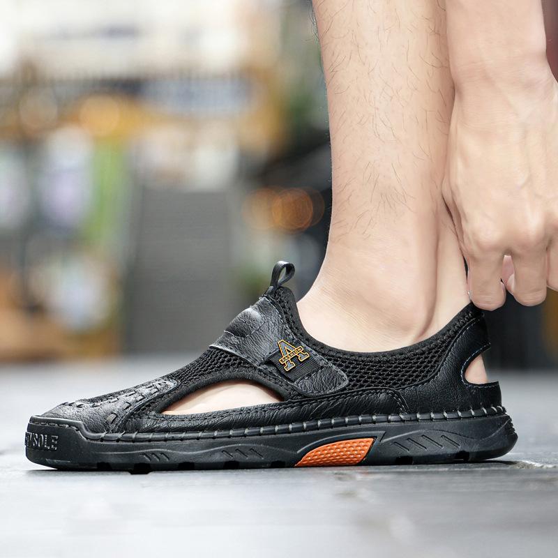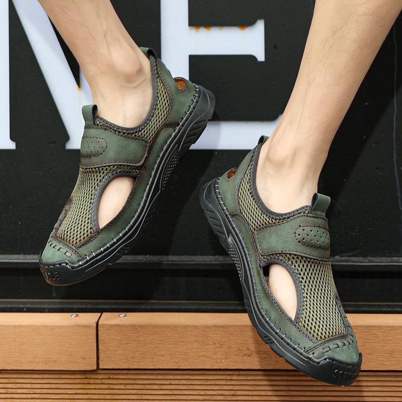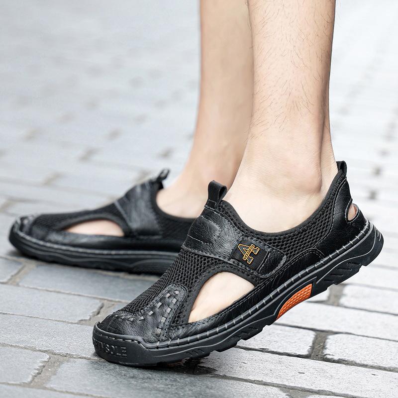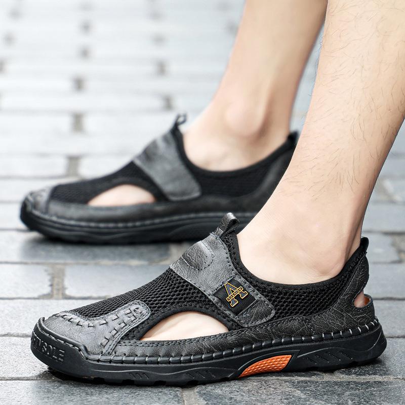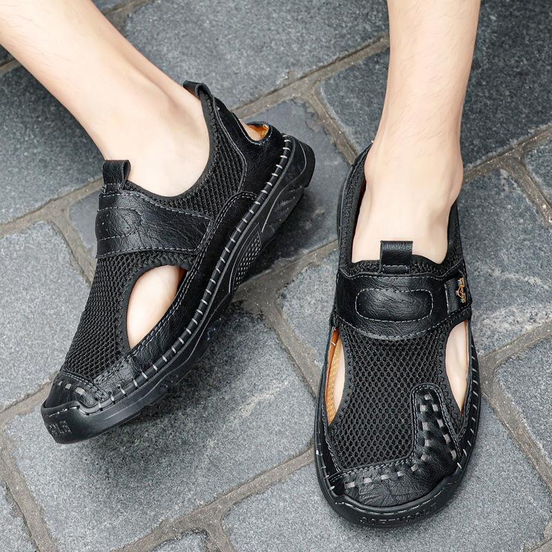 Zapatos de playa de verano para hombre de talla grande transfronterizos, sandalias casuales para exteriores de comercio exterior, zapatos huecos sin cordones cosidos a mano para hombre