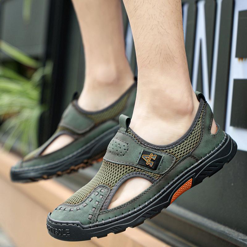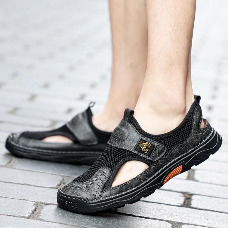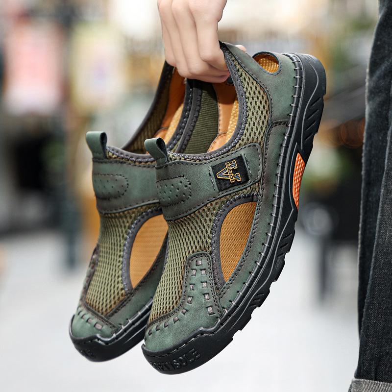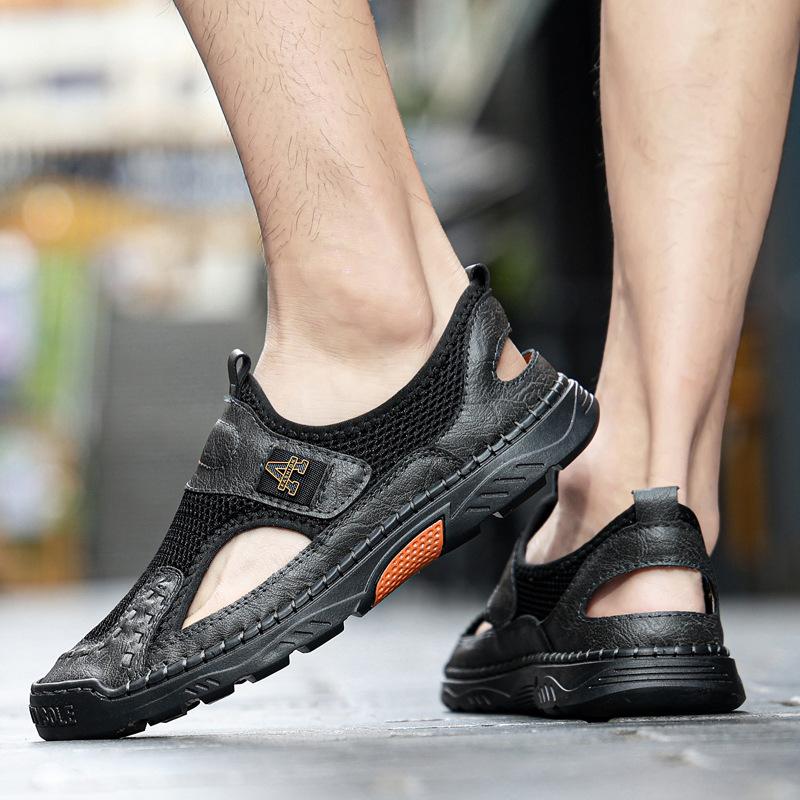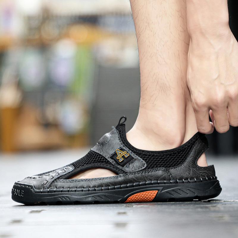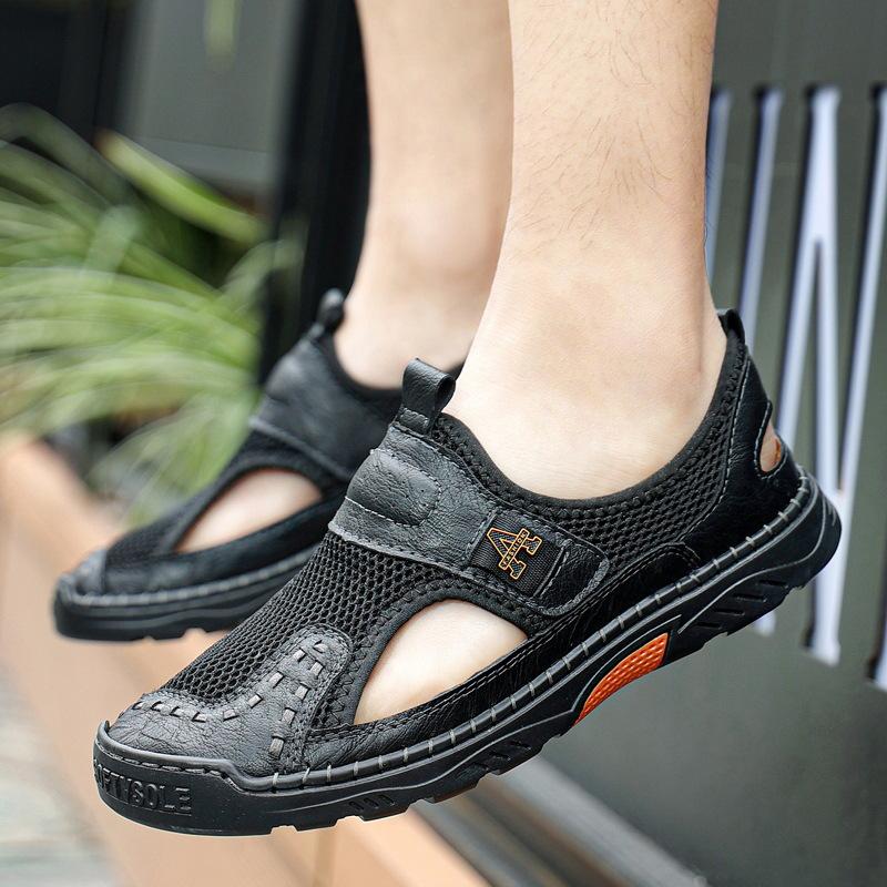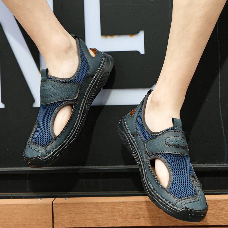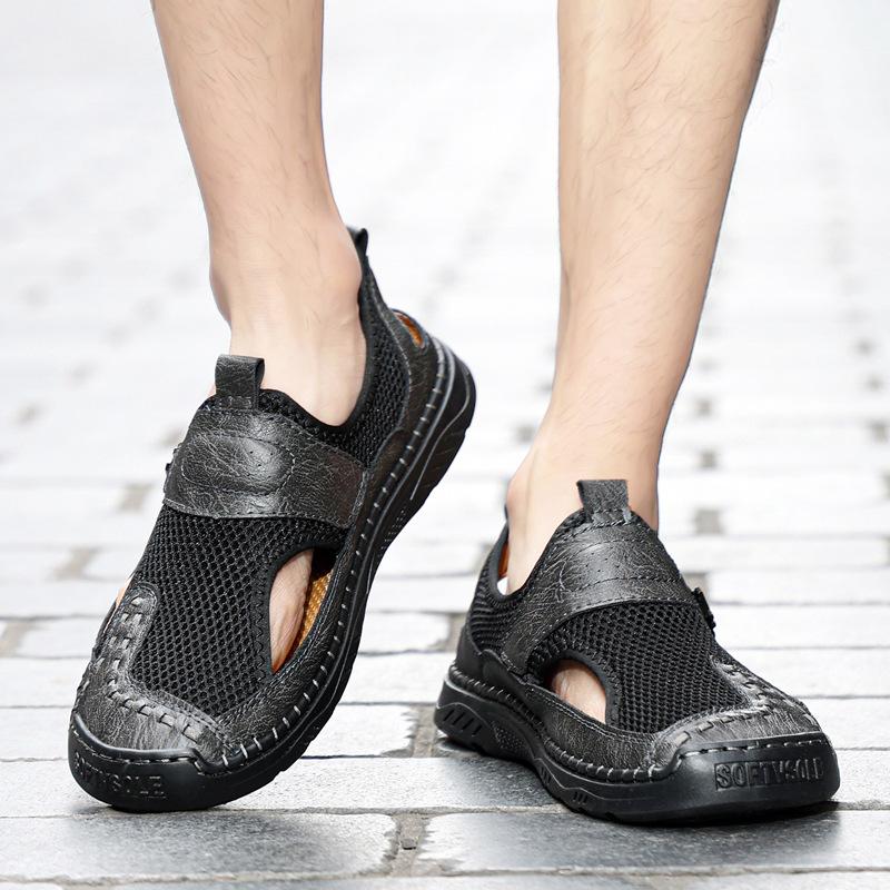 Zapatos de playa de verano para hombre de talla grande transfronterizos, sandalias casuales para exteriores de comercio exterior, zapatos huecos sin cordones cosidos a mano para hombre