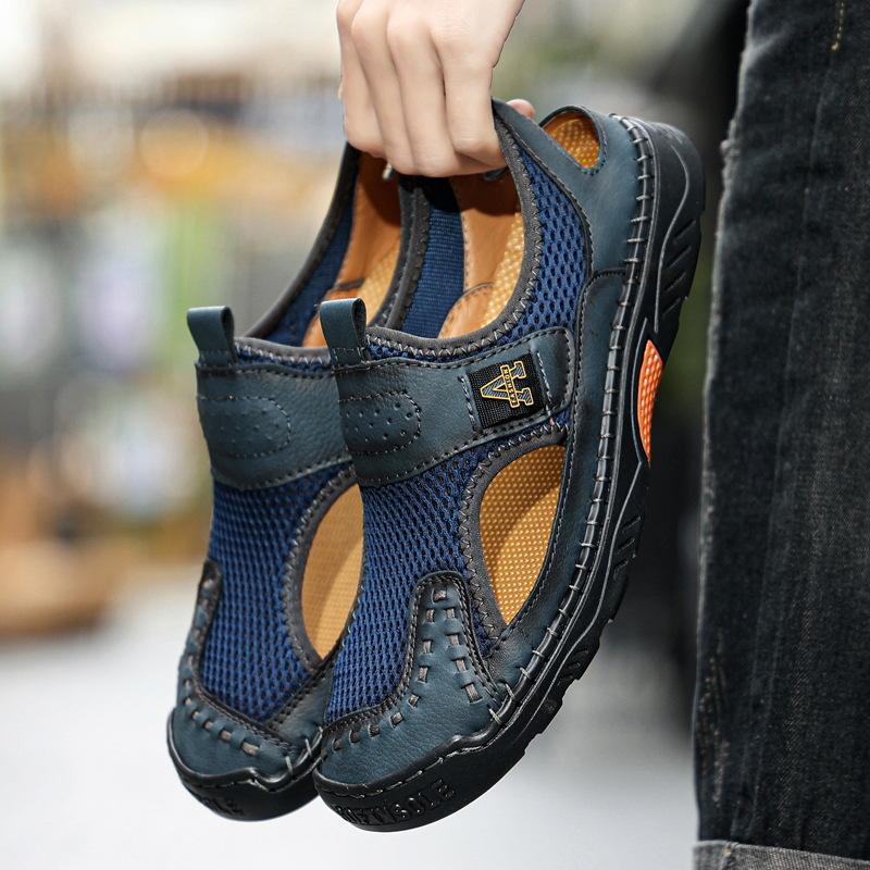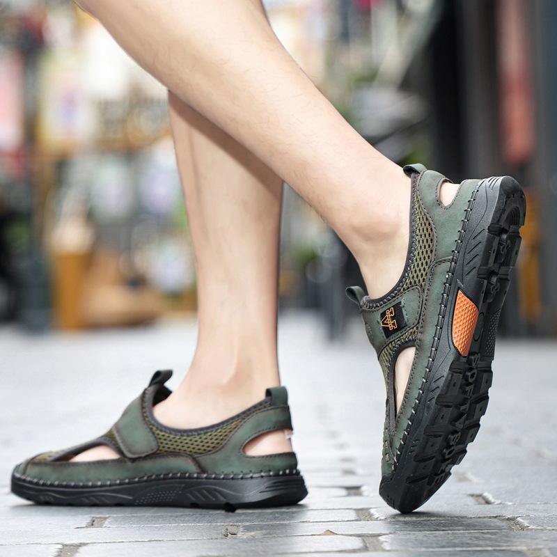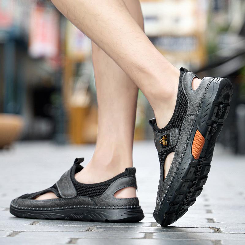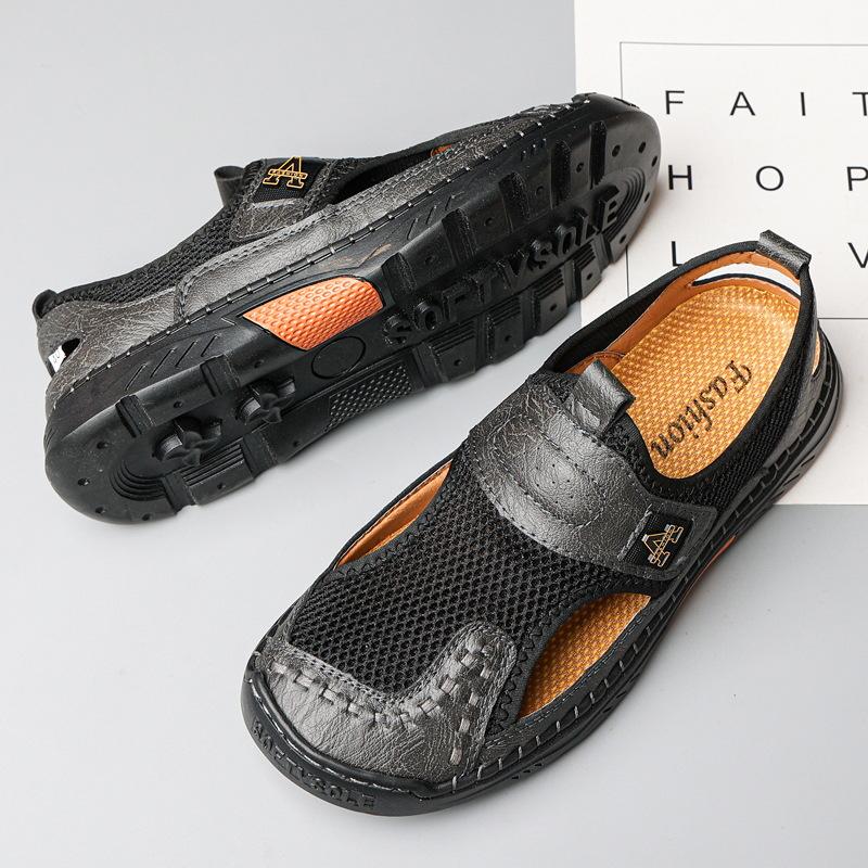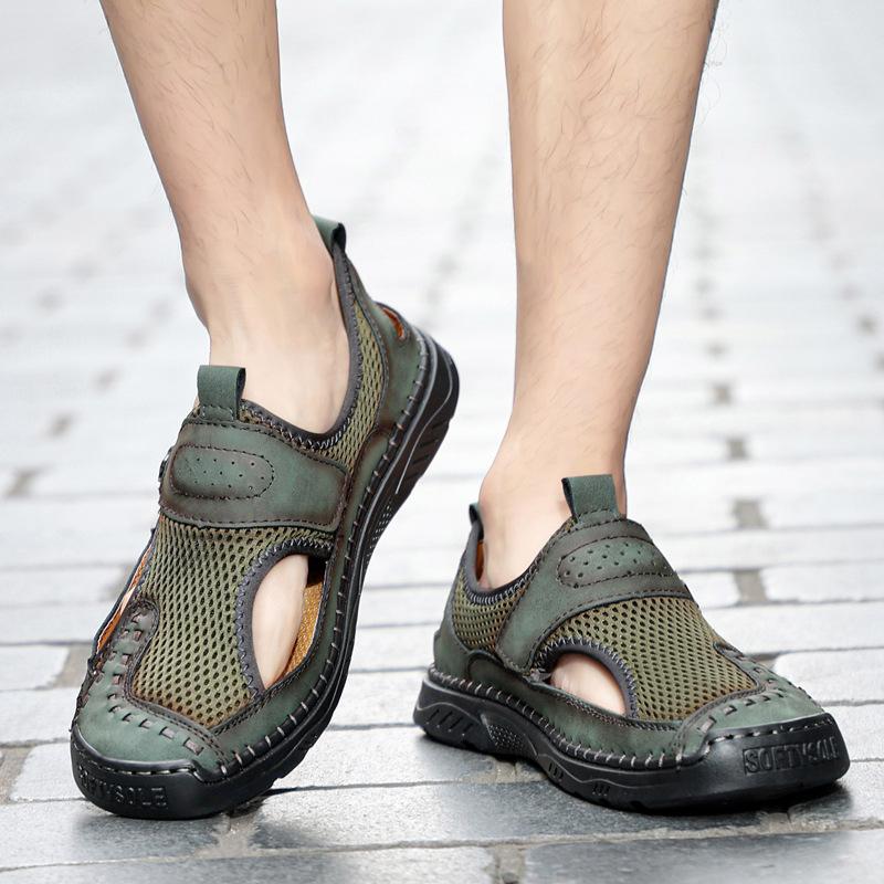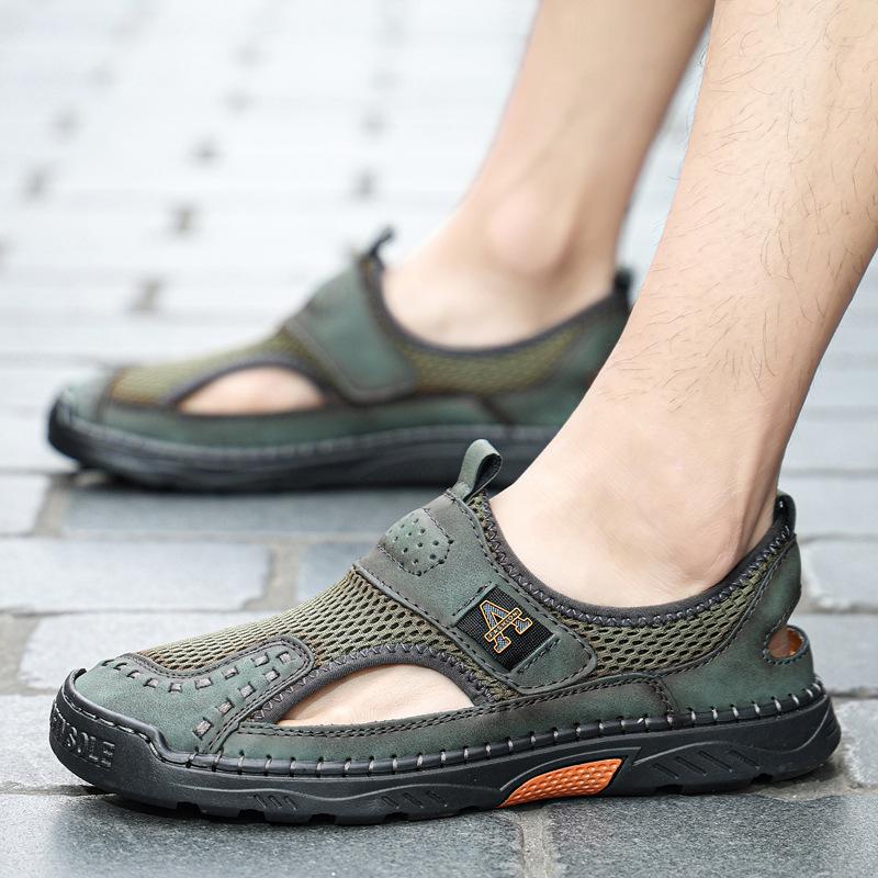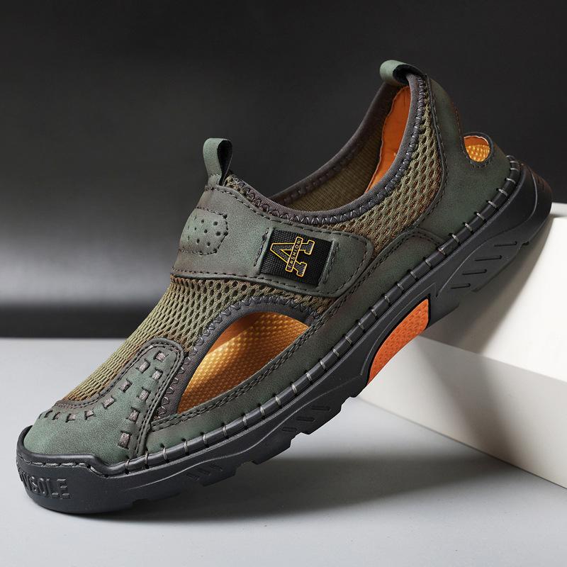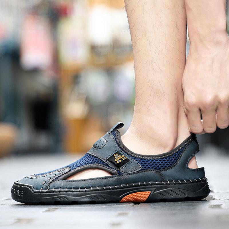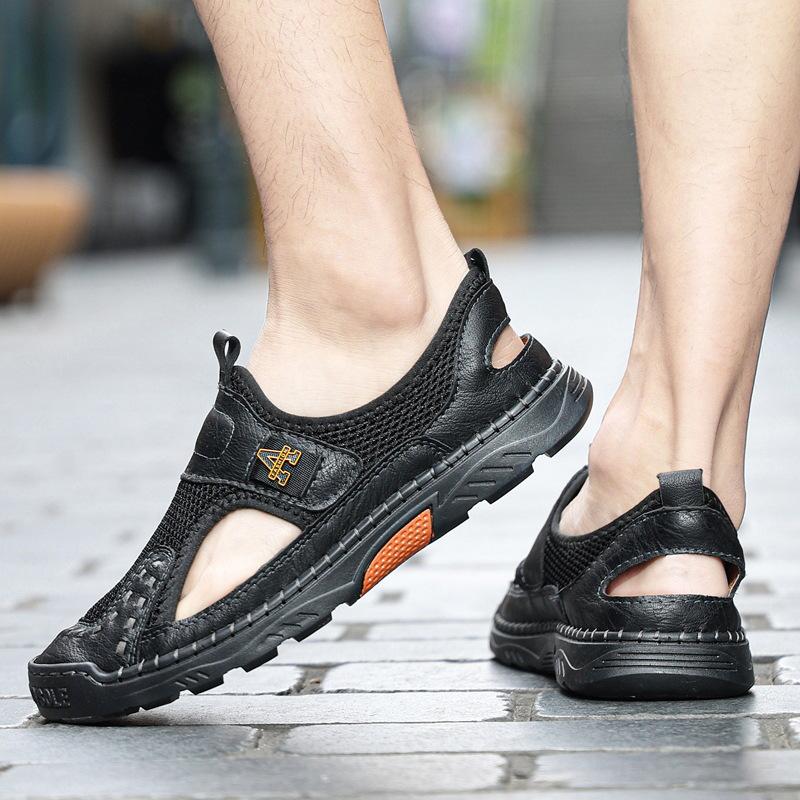 Zapatos de playa de verano para hombre de talla grande transfronterizos, sandalias casuales para exteriores de comercio exterior, zapatos huecos sin cordones cosidos a mano para hombre