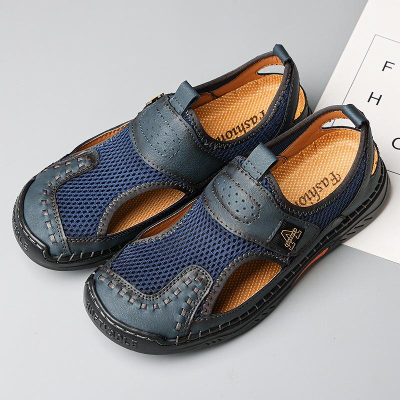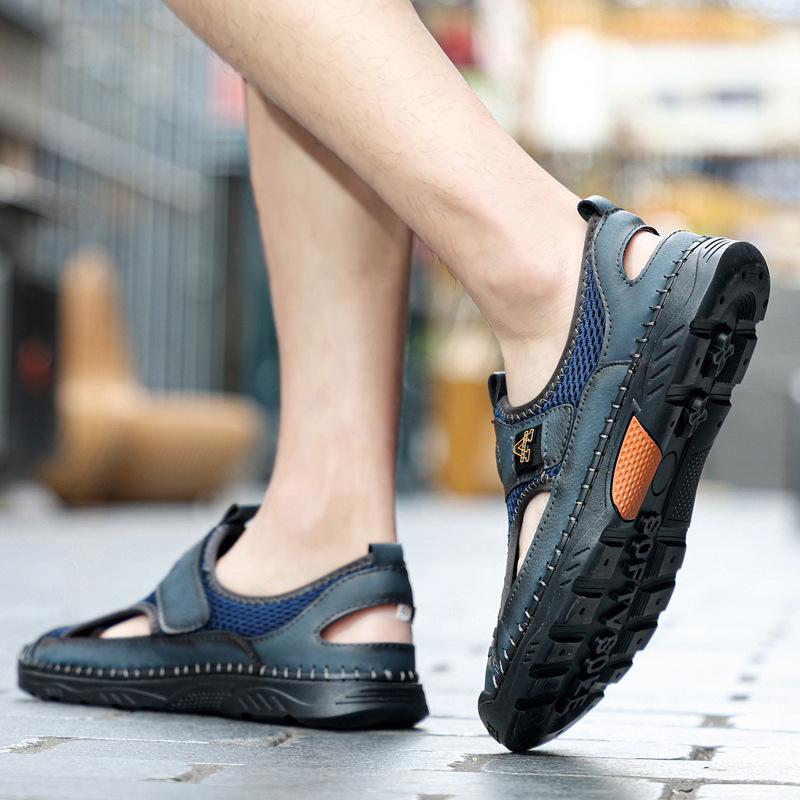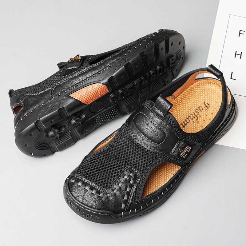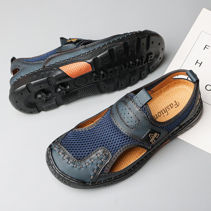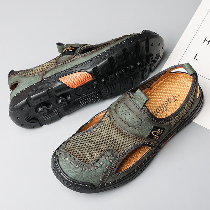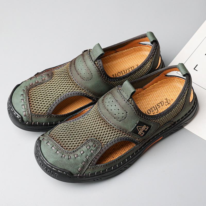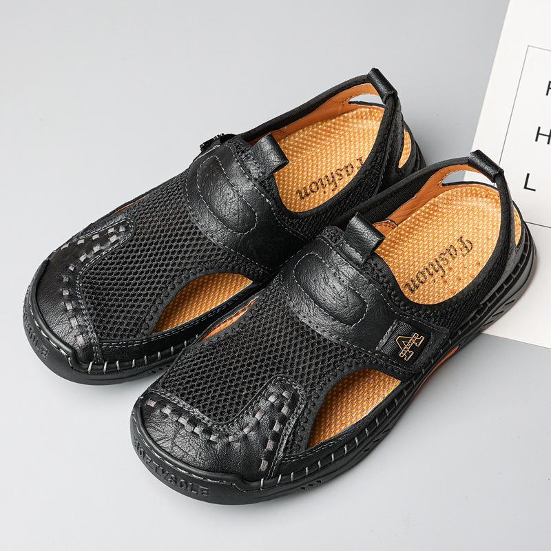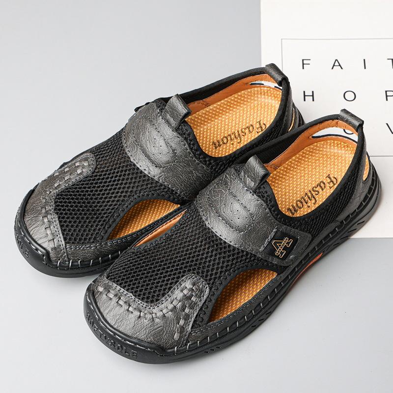 Zapatos de playa de verano para hombre de talla grande transfronterizos, sandalias casuales para exteriores de comercio exterior, zapatos huecos sin cordones cosidos a mano para hombre