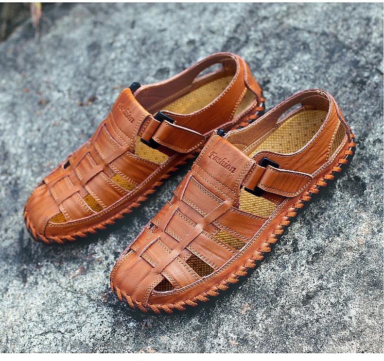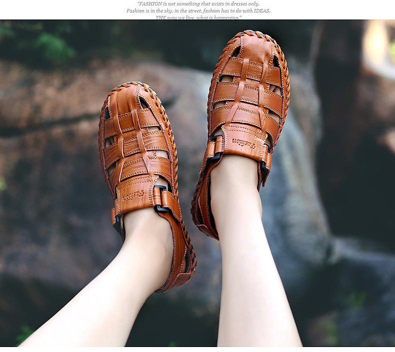 Sandalias de verano de talla grande casuales para hombre de comercio exterior sandalias huecas para hombre zapatos hechos a mano sandalias de cuero para exteriores
