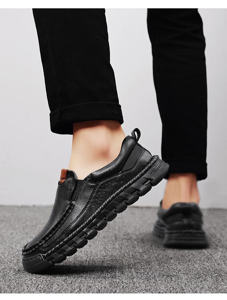 Zapatos casuales de cuero para hombre, de talla grande, de primavera y otoño, de moda, cosidos a mano, cómodos para conducir.