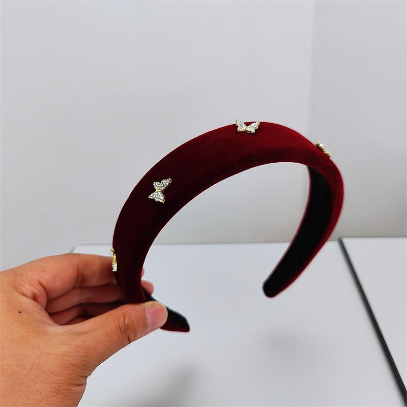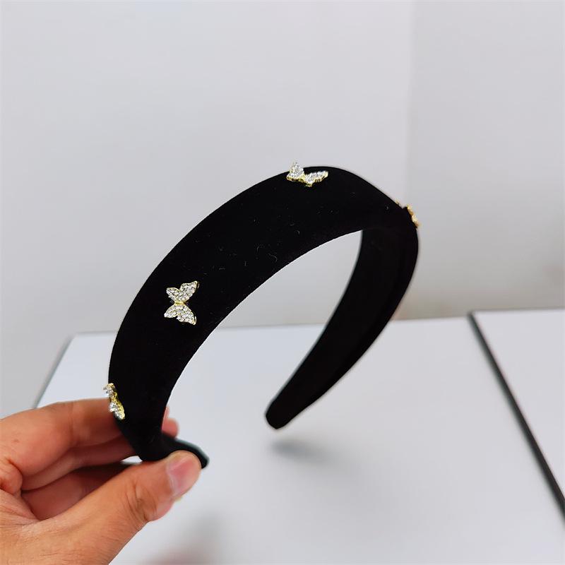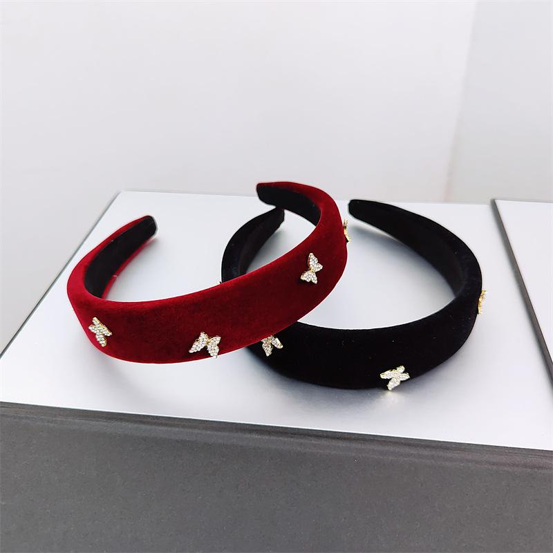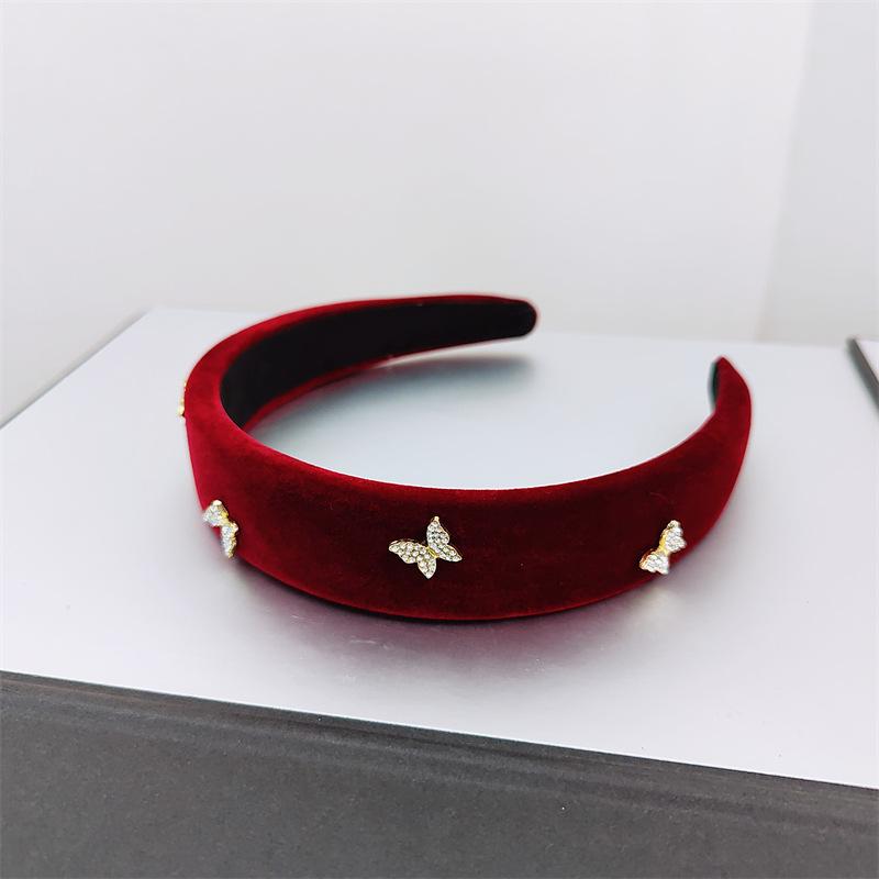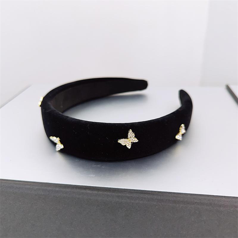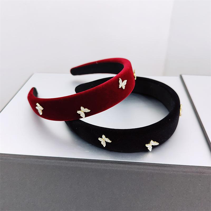 Diadema de Terciopelo Retro Coreana con Mariposa de Diamantes, Diadema Elegante de Corona Alta, Pasador para el Cabello Versátil de Moda para Celebridades de Internet, Accesorio para el Cabello