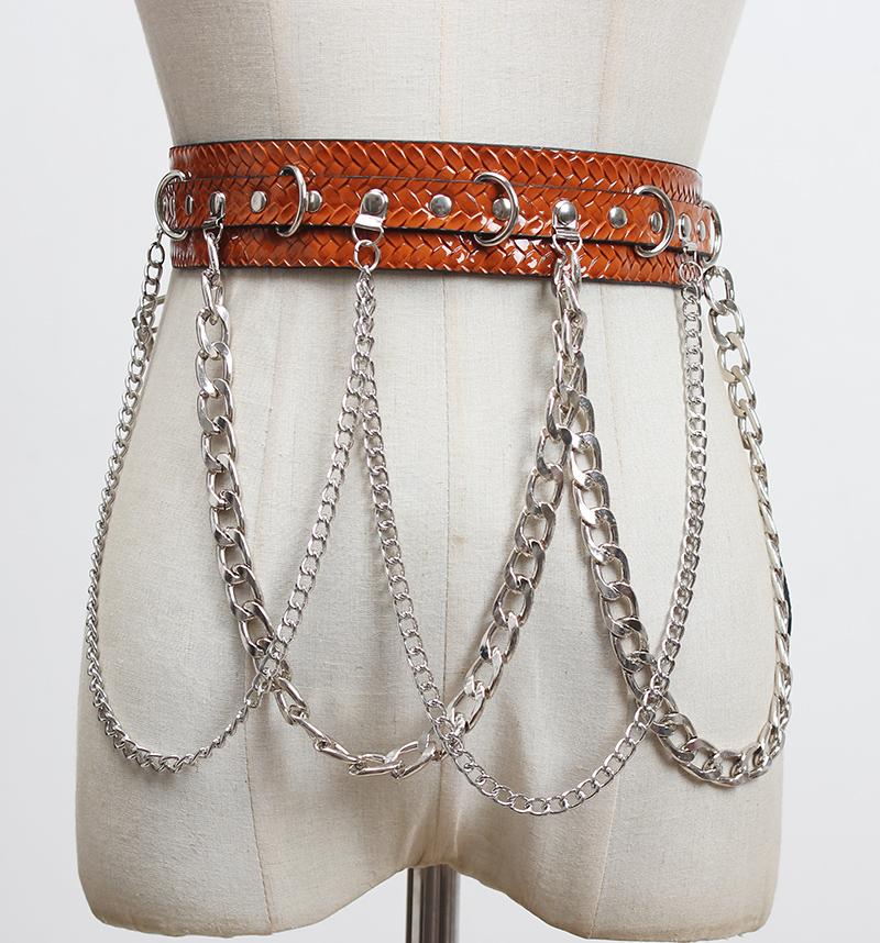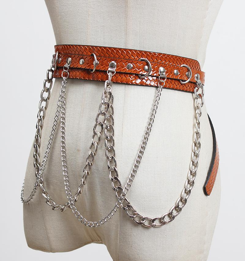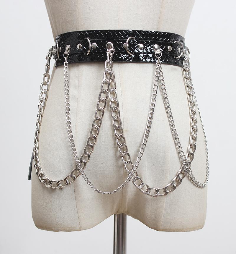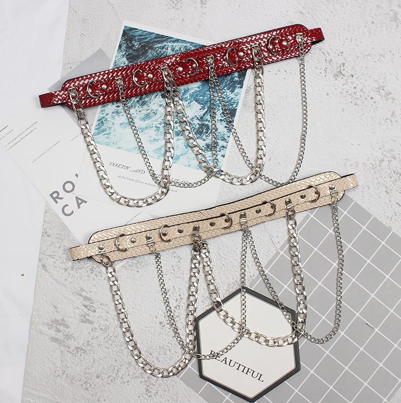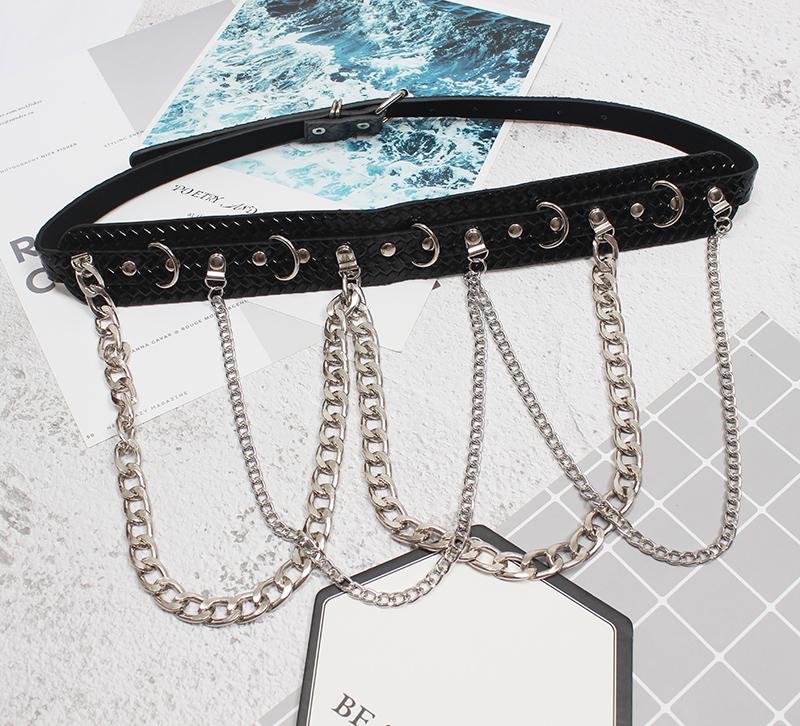 Cinturón punk oscuro que combina con todo, cadena para la cintura con falda, remache vintage, cinturón con borlas, estilo femenino, sello de cintura negro a la moda.