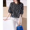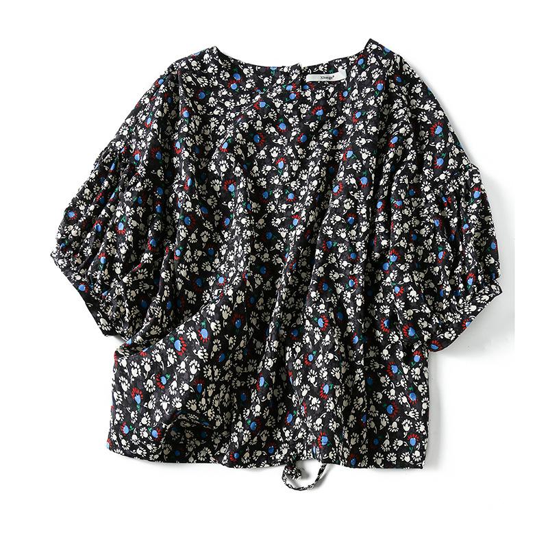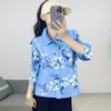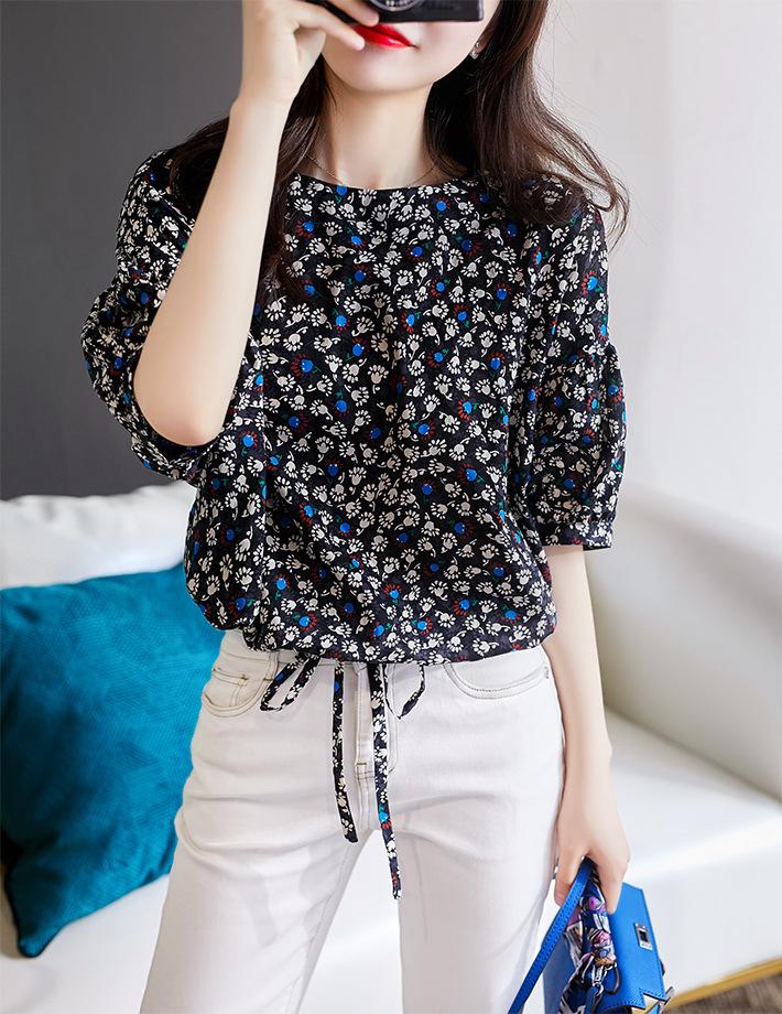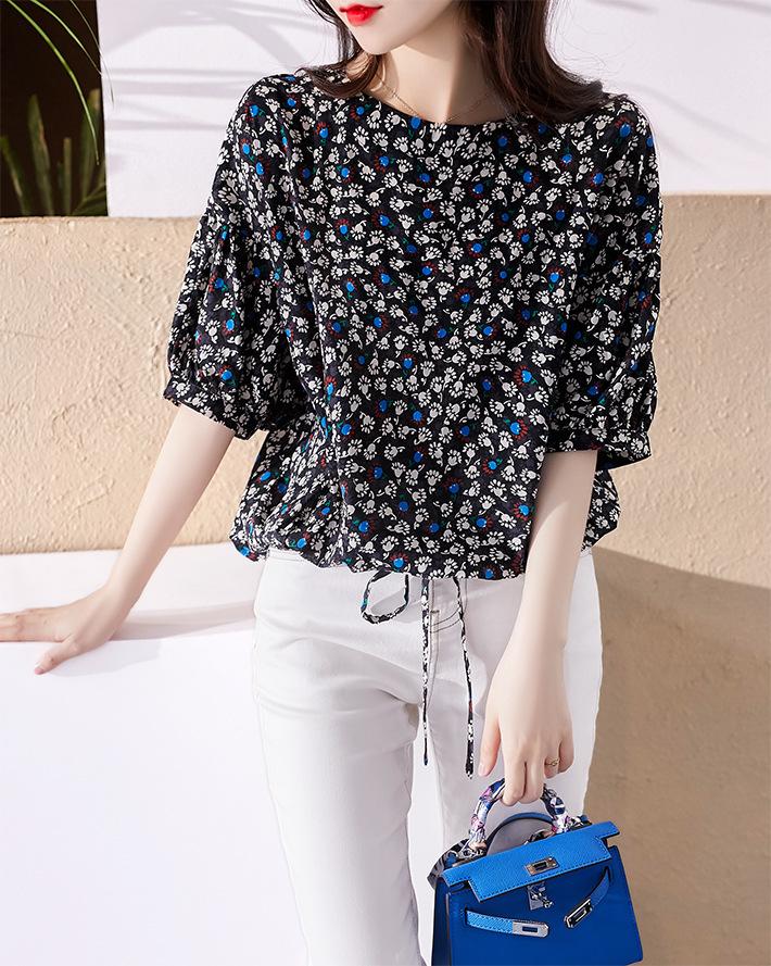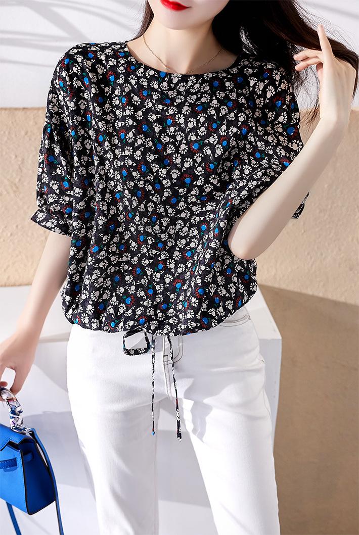 2024XY 317412 MG VacaTion Diario ReTro Floral Cuello Redondo Manga Murciélago Suelta Camiseta Top para Mujer