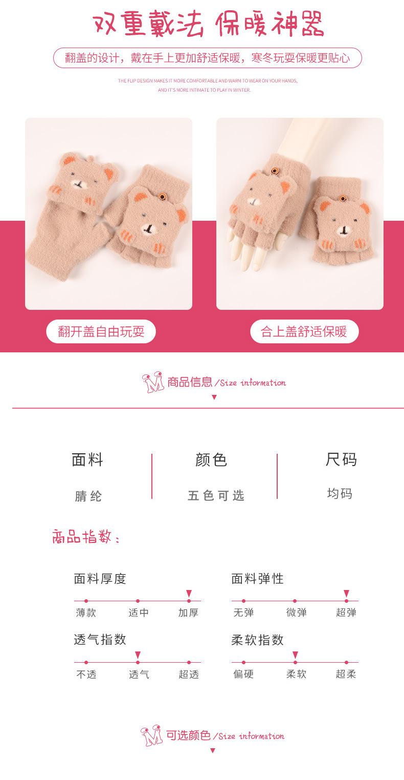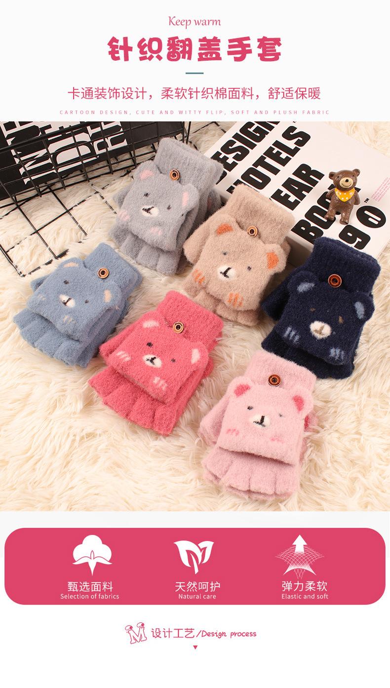 Guantes de felpa nuevos de otoño e invierno para niños, cálidos y gruesos, de dibujos animados, de doble uso, con medio dedo, para estudiantes de secundaria y primaria.