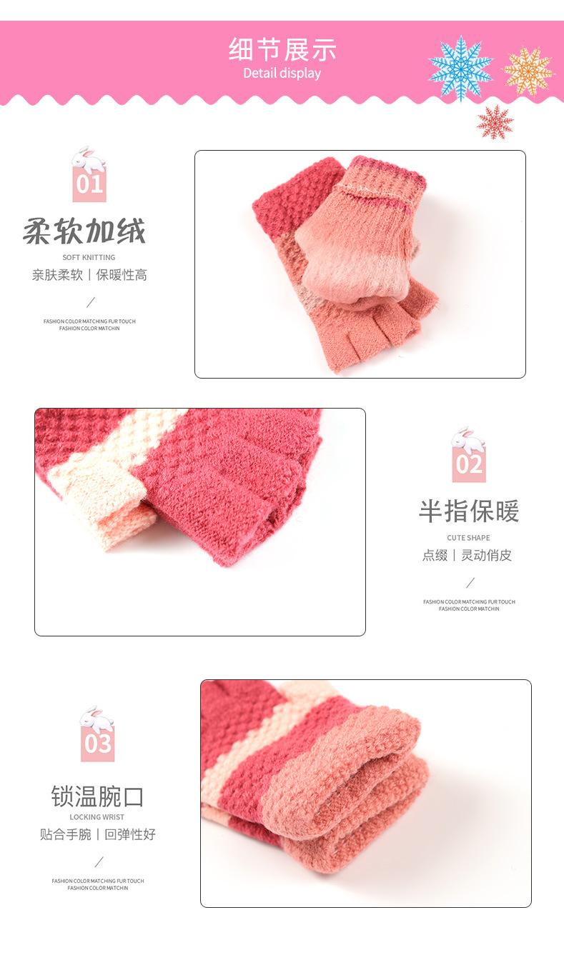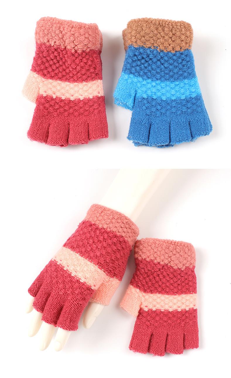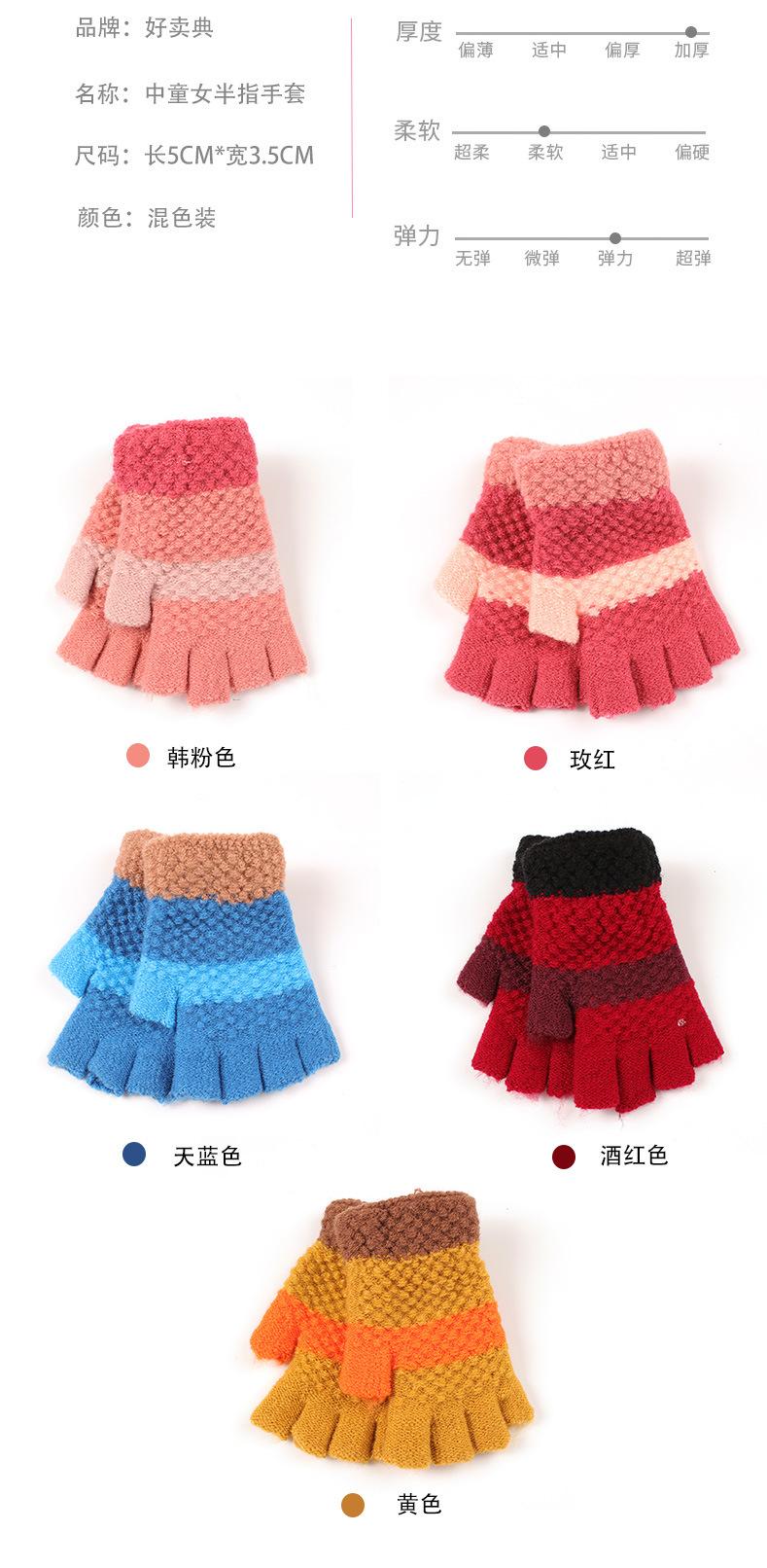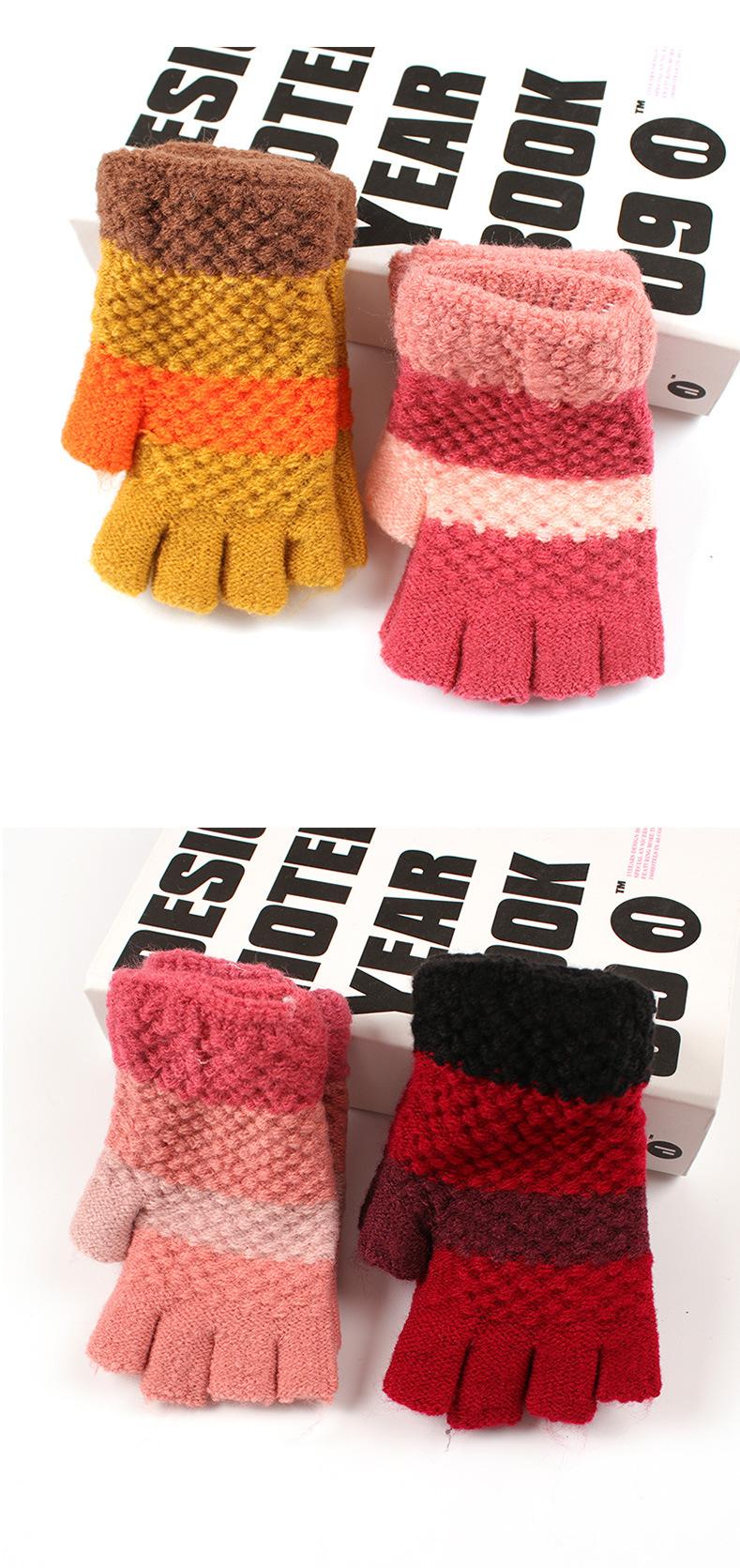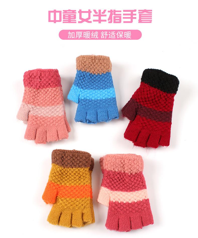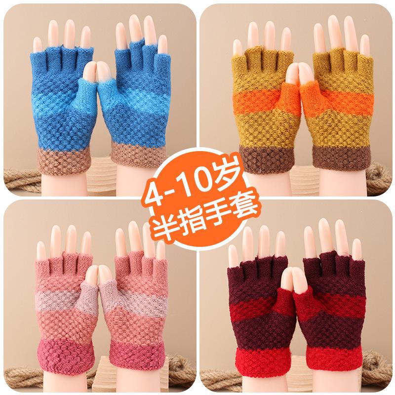 Guantes de invierno cálidos para niños de 4 a 10 años, guantes coreanos de medio dedo para niños, guantes de punto gruesos con dedos abiertos para estudiantes varones, venta al por mayor