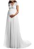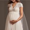 Vestido de Novia Premamá con Cintura Alta, Talla Grande, Encaje Europeo y Americano, Estilo Bosque, Pequeña Cola, Blanco, Vestido Transfronterizo de Amazon para Boda