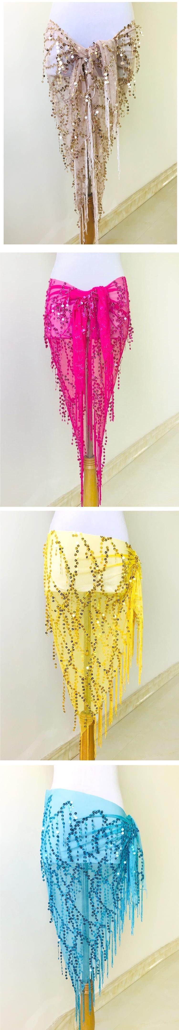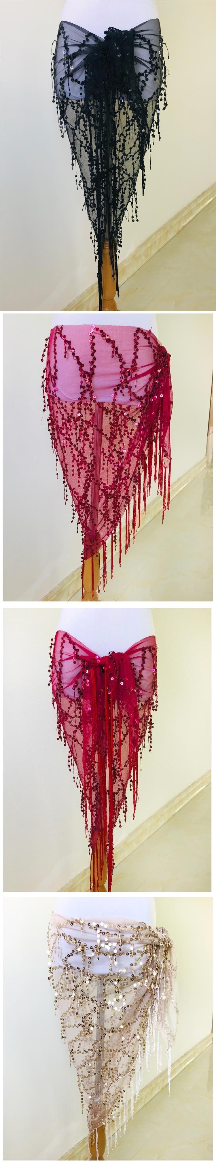 Cadena de cintura para danza del vientre, nuevos accesorios con borlas y lentejuelas, ropa de práctica de danza india, toalla de cadera para principiantes, toalla de cintura triangular
