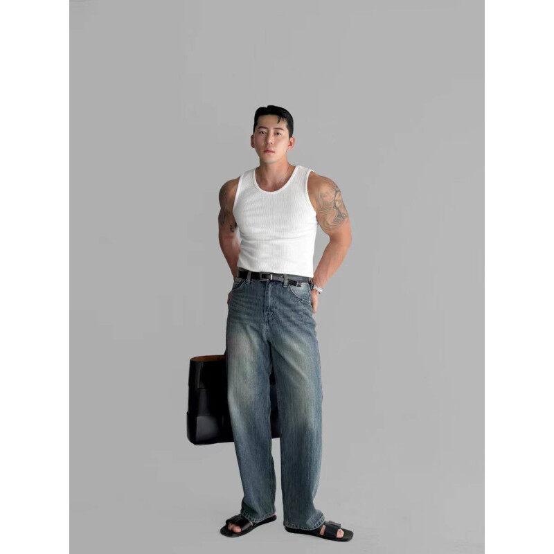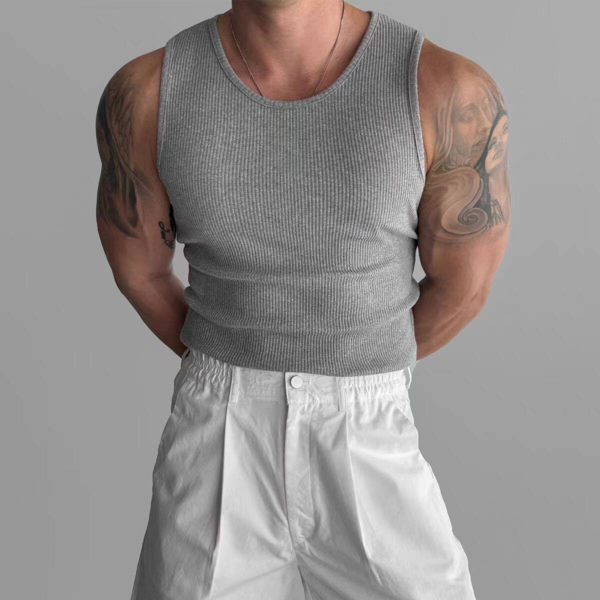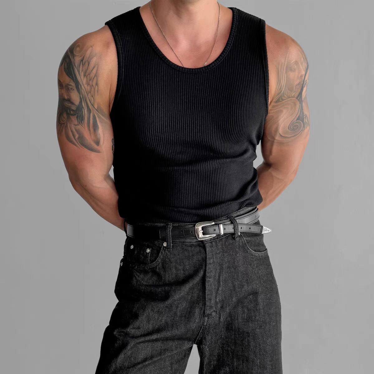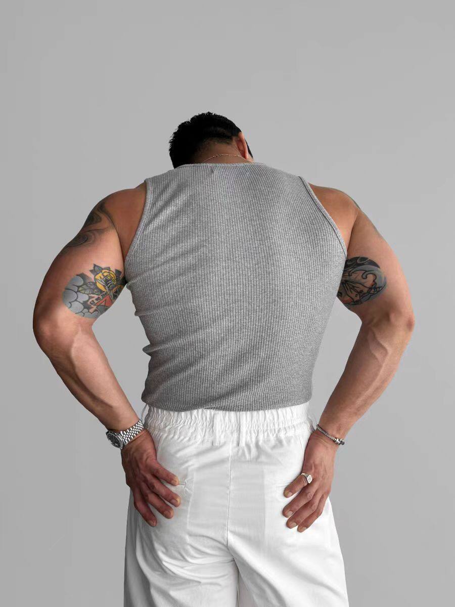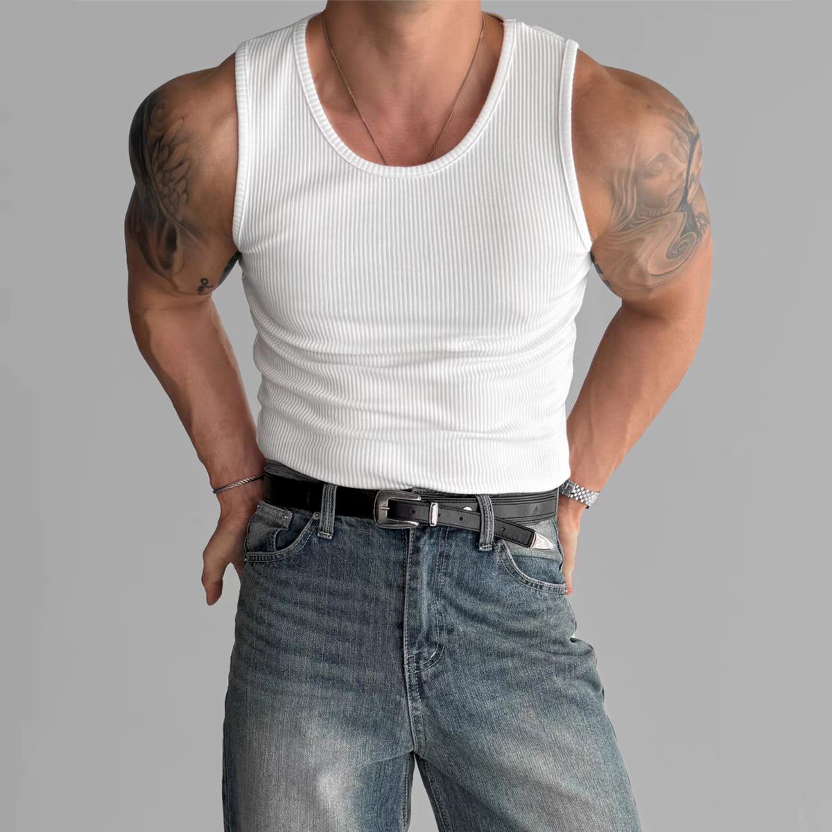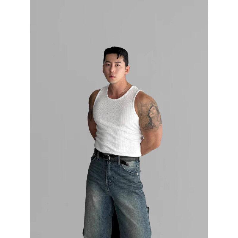 Chaleco sin mangas para hombre, camiseta ajustada de moda de verano 2025, elástica, para fitness y deportes.