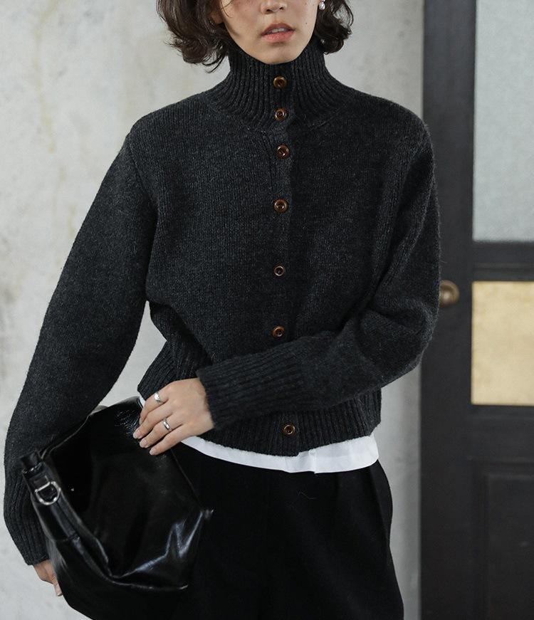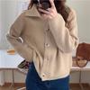 Cárdigan de punto con solapa de lana y botones de madera para mujer, chaqueta informal holgada de otoño e invierno