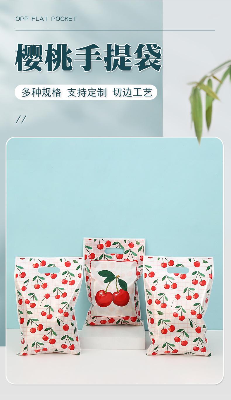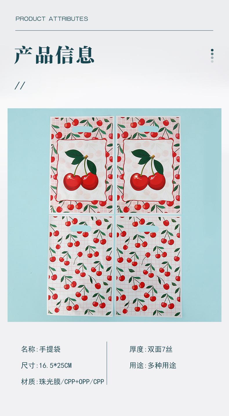 Bolsa de mano con estampado de cerezas de fábrica, bolsa de regalo para fiestas infantiles, bolsa de embalaje de dulces con película de perla, bolsa de plástico para regalo de devolución