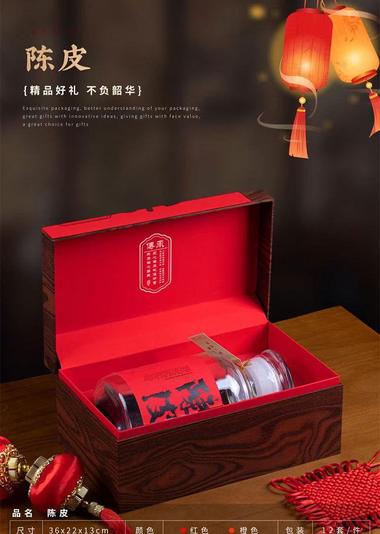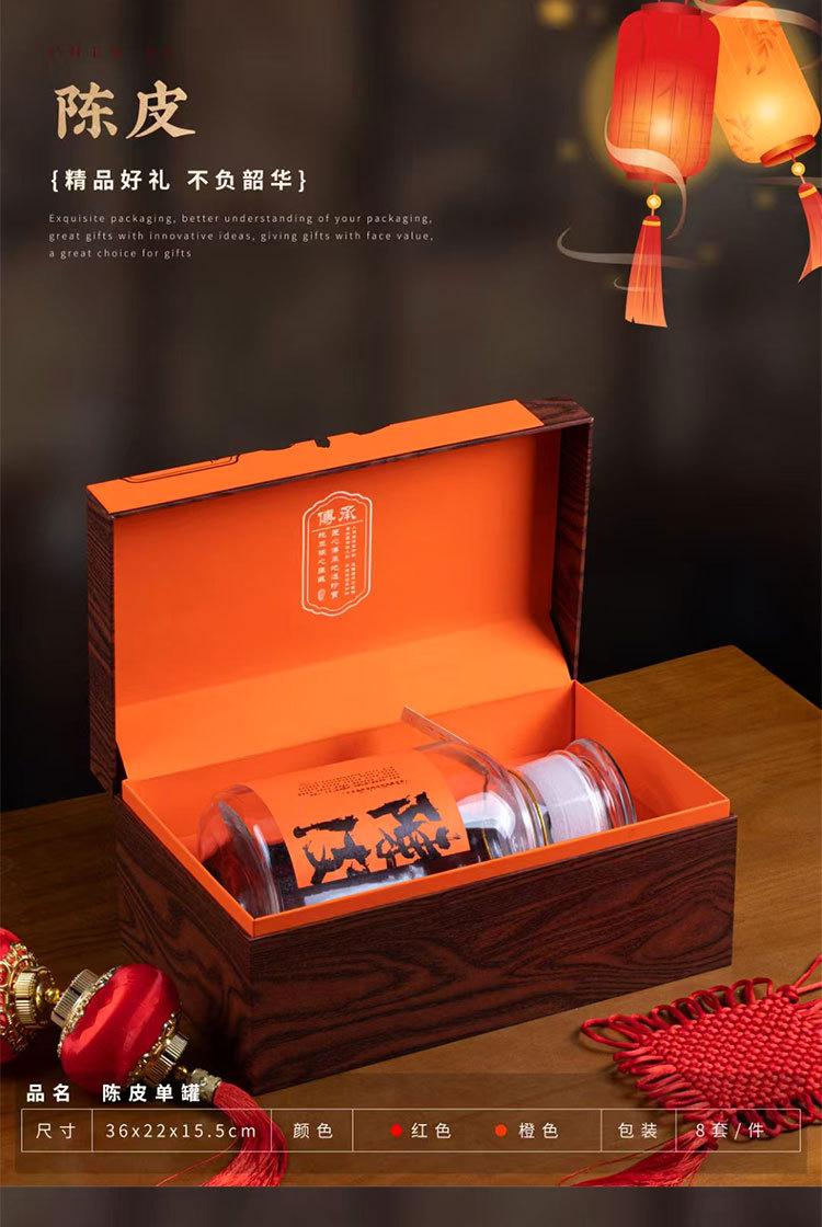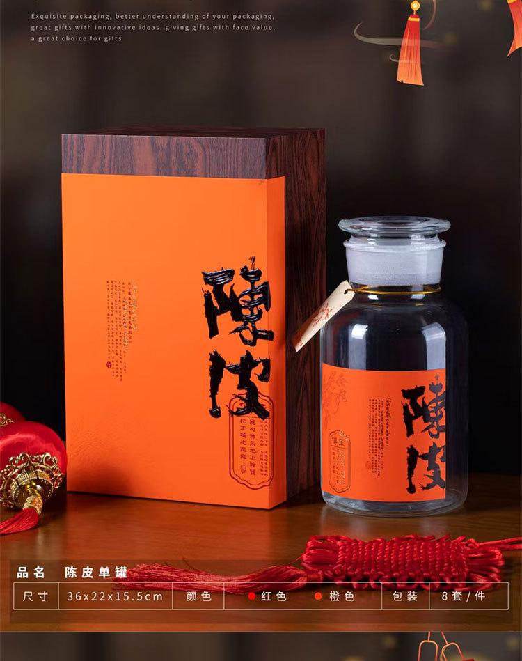 Chenpi glass jar gift box red model, Chenpi glass jar gift box orange style