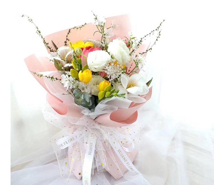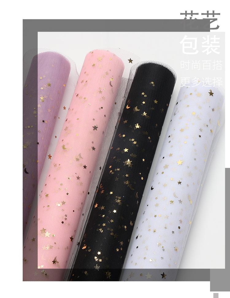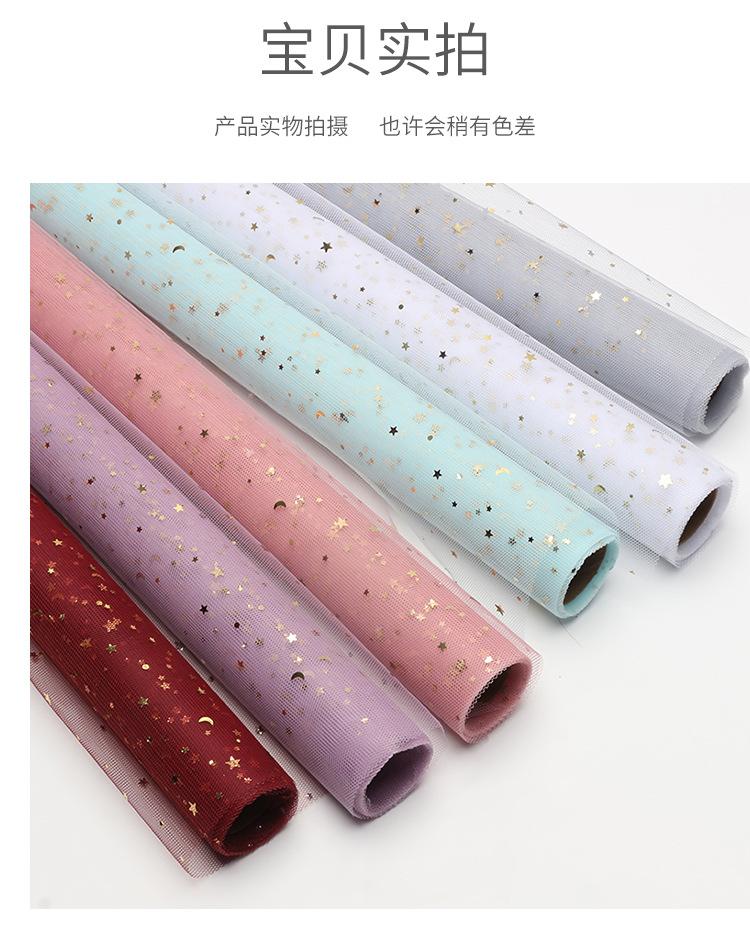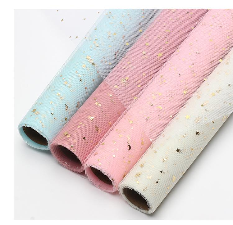 Hilo de estrella y luna estilo coreano Hua Xi, hilo de estrella bronceador, malla de hilo para envolver flores, malla para empaquetar flores rosas, materiales para empaquetar ramos