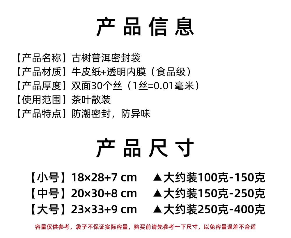 20 bags-[ancient tree pu'er] small size 18×28cm, 20 bags-[ancient tree pu'er] medium size 20×30cm, 20 bags-[an...
