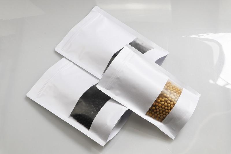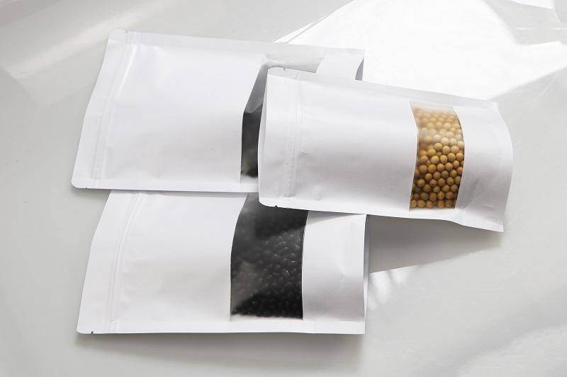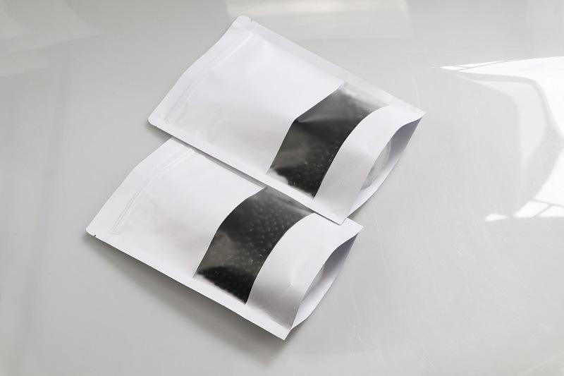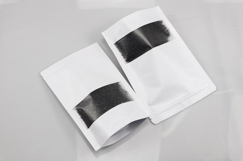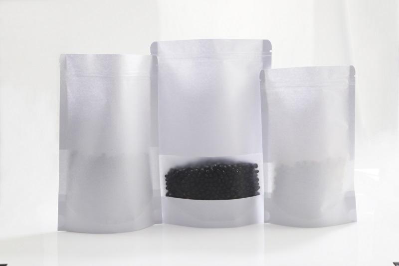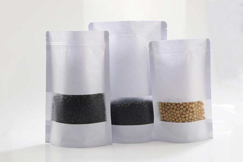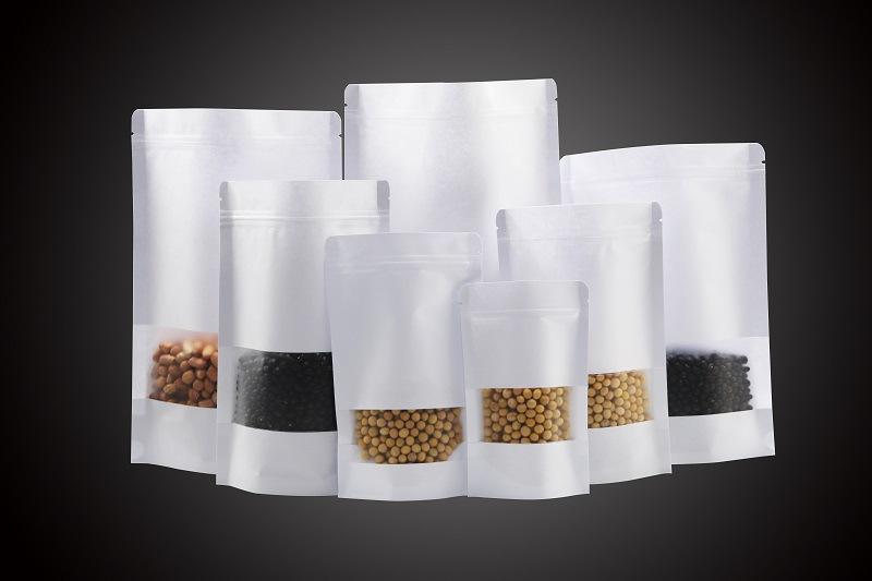 Bolsa de papel kraft autosellable bolsa al por mayor bolsa para envasado de alimentos té nueces semillas de melón ventana abierta auto-soporte boca sellada blanca