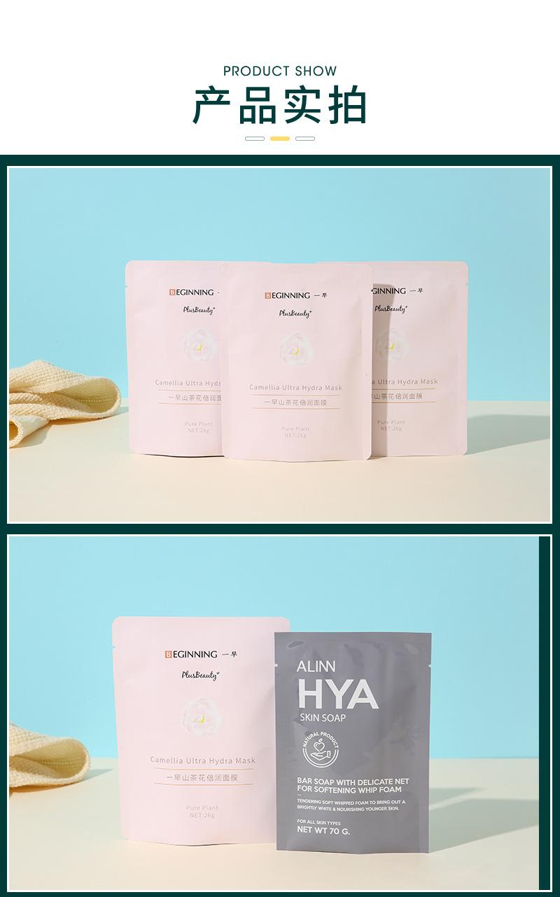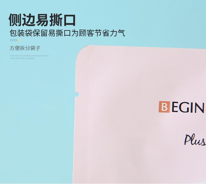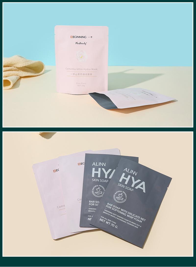 Bolsa de embalaje para mascarilla con sello en tres lados, forma especial, papel de aluminio, sello en tres lados, bolsa de embalaje al vacío, bolsa sellada a color para muestra cosmética
