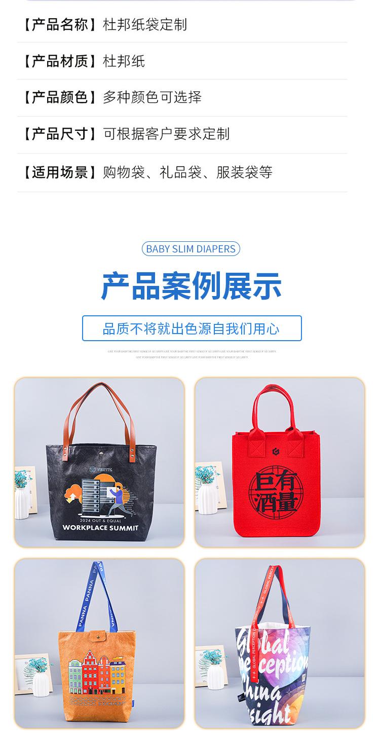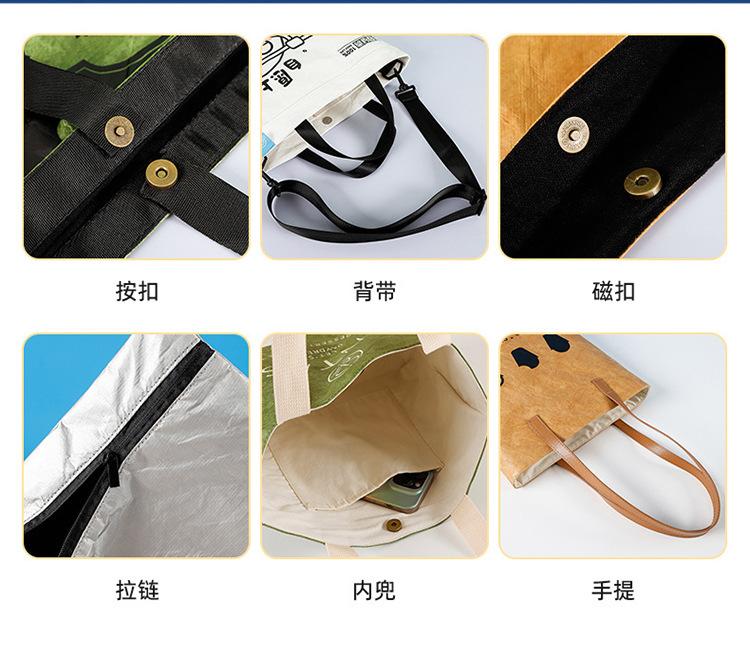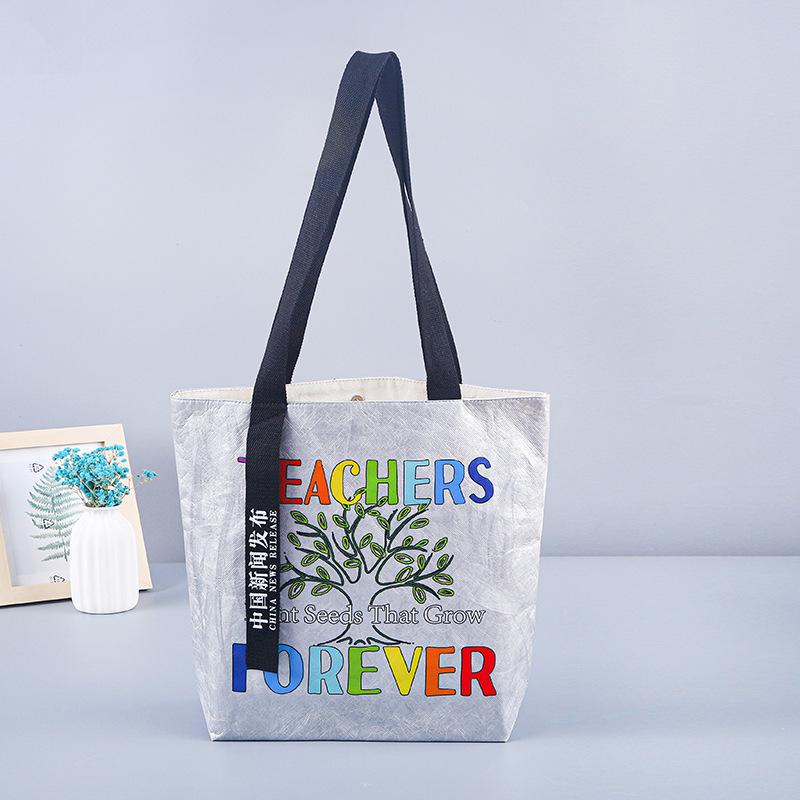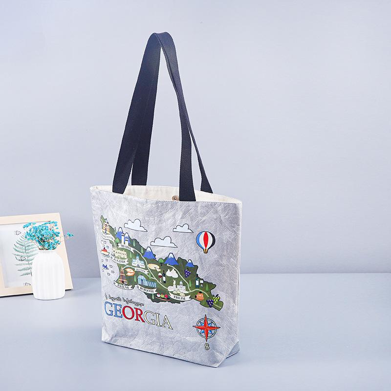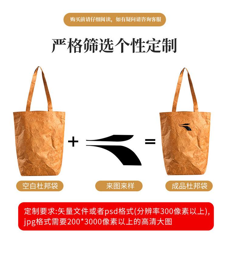 Bolsa de Papel Dupont Personalizada Impermeable Lavable Bolsa de Papel Kraft para Hombro Regalo Ecológica Bolsa de Compras con Impresión de Logo