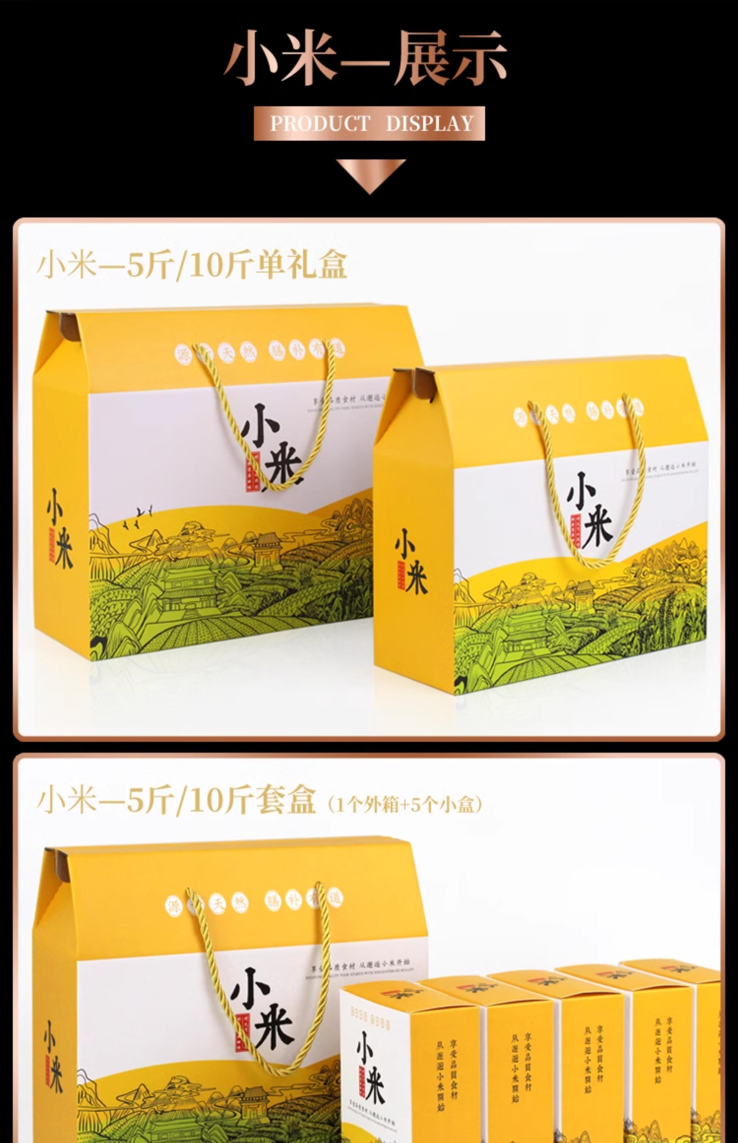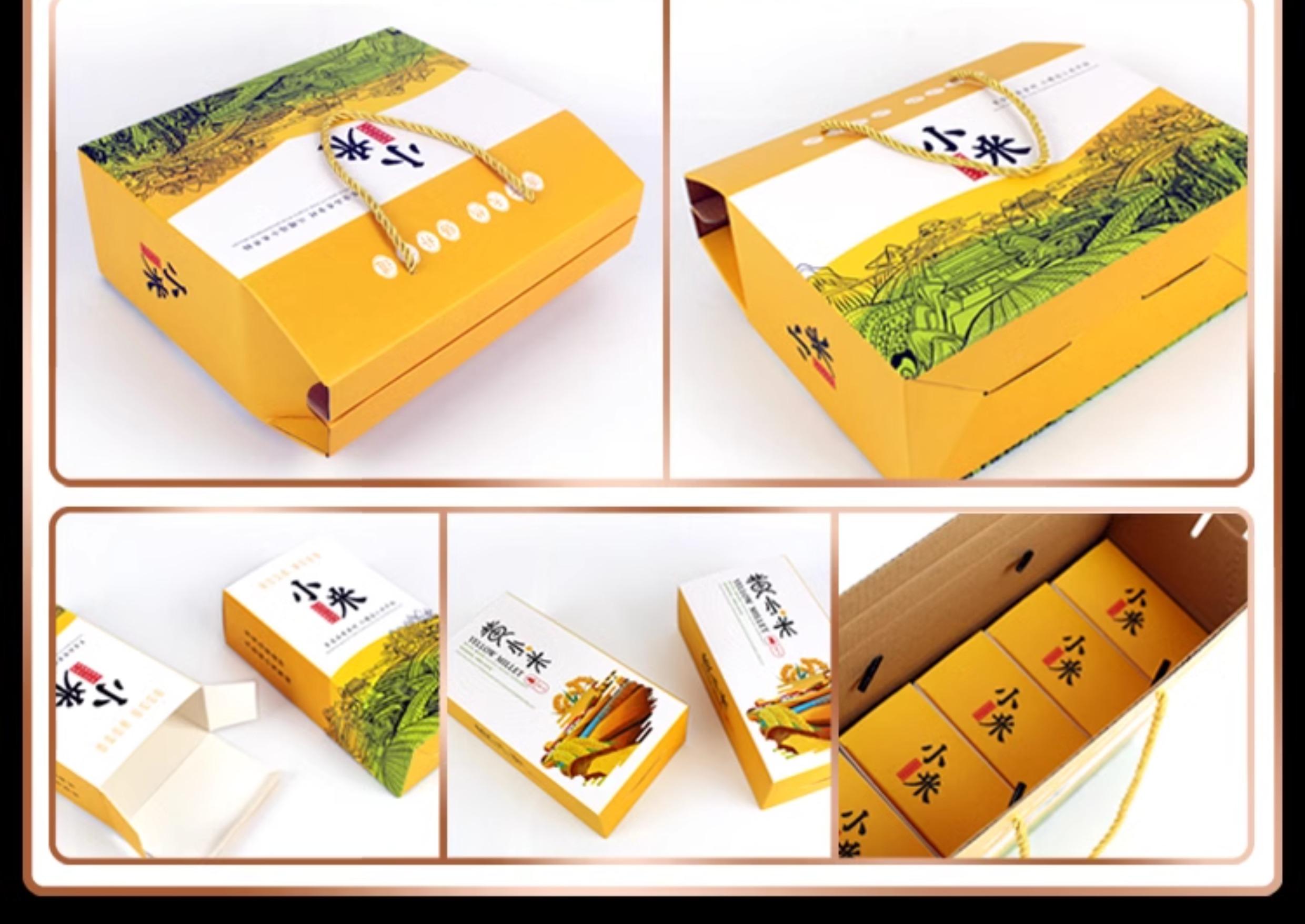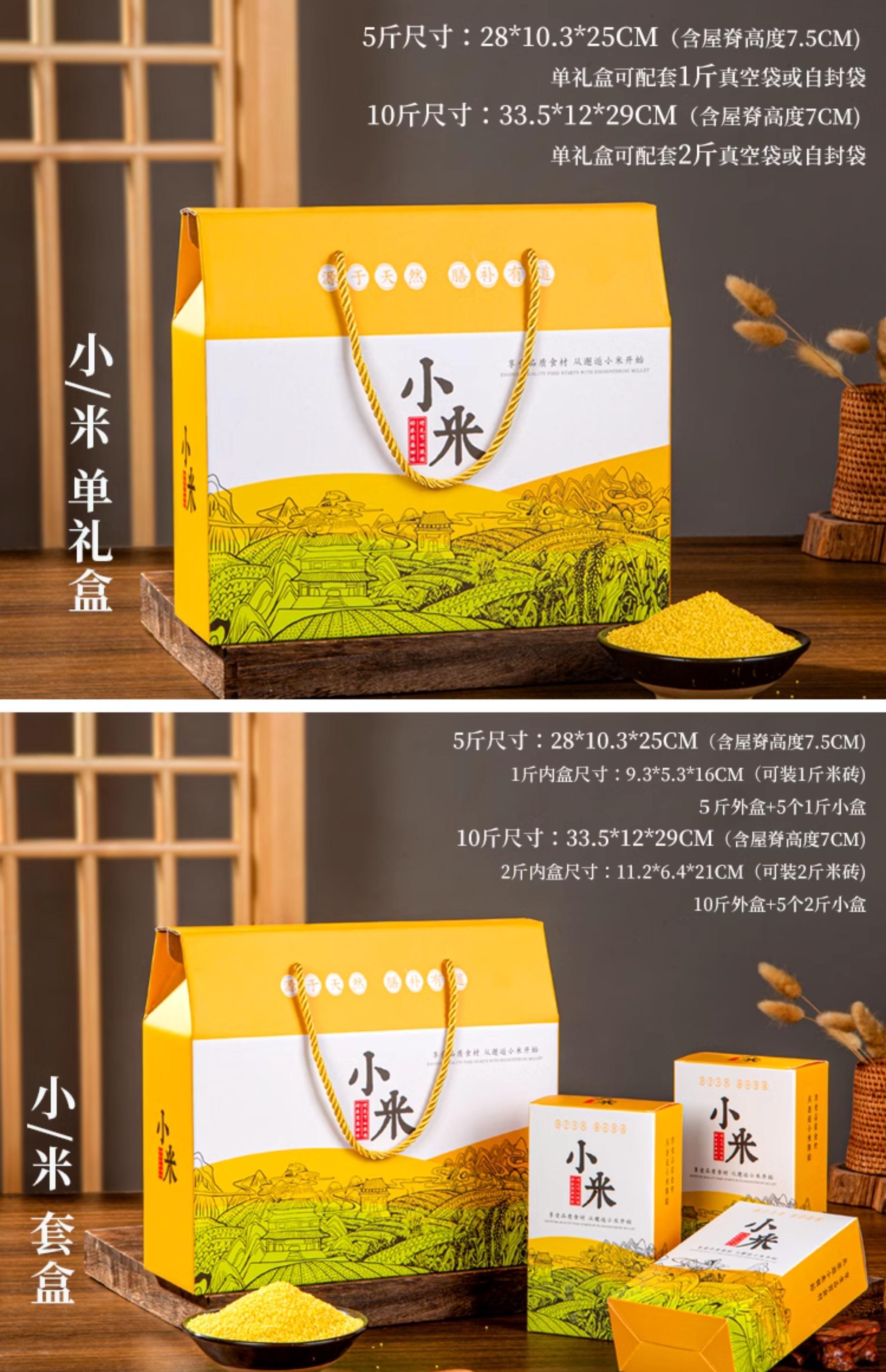 Caja de embalaje universal para mijo, caja de regalo para cereales gruesos, caja de regalo para mijo amarillo, bolsa de regalo portátil, personalización