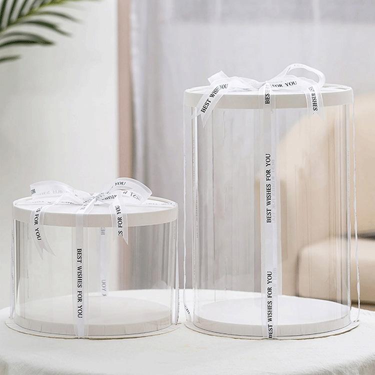 Caja de pastel redonda transparente de 4 4 4 6 8 8 10 pulgadas, caja de embalaje para pastel de cumpleaños roja de red alta de una o dos capas