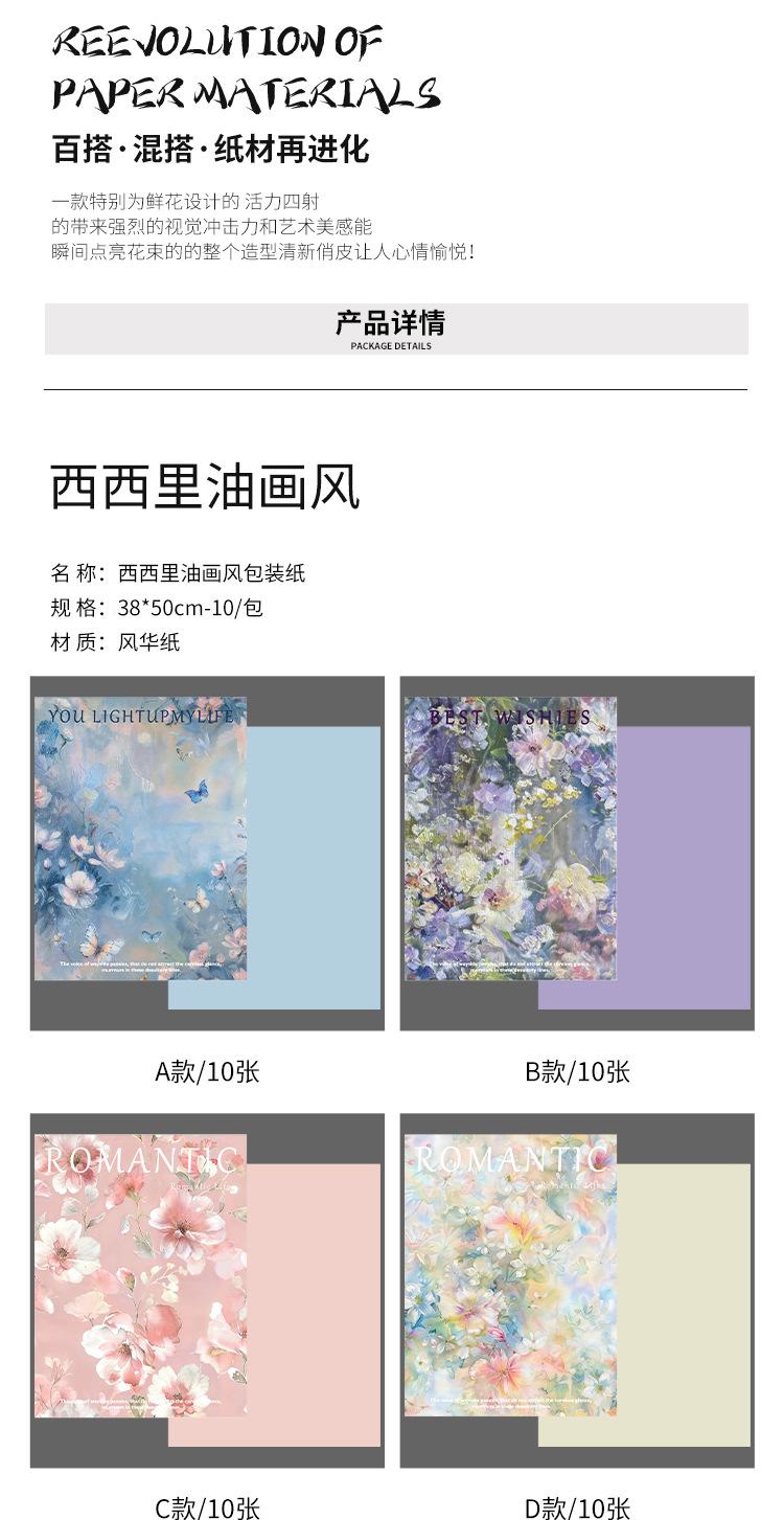 | 1 | Papel para Pintura al Óleo Siciliano/Papel Fenghua | 38*50CM/10 hojas | 3.3 | Bolsa | 100 | 330 |