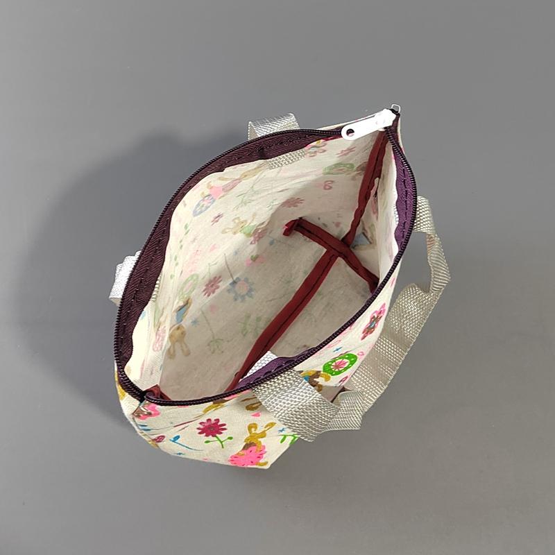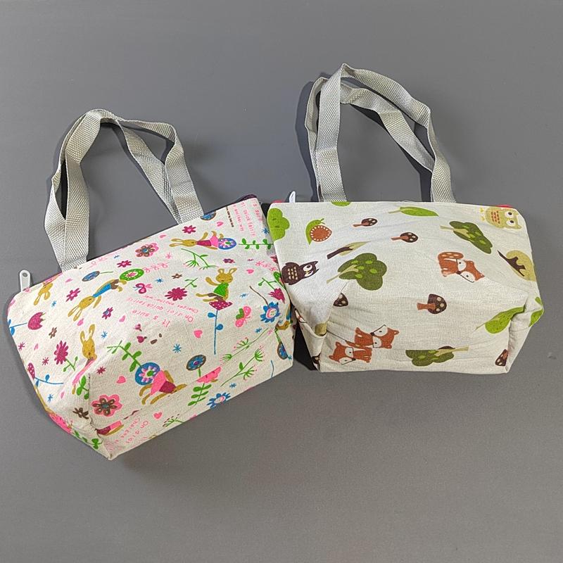 Bolsa tote pequeña fresca de algodón y lino, bolsa con cremallera, bolsa de compras, bolsa de almacenamiento, bolsa para el almuerzo, bolso de mano