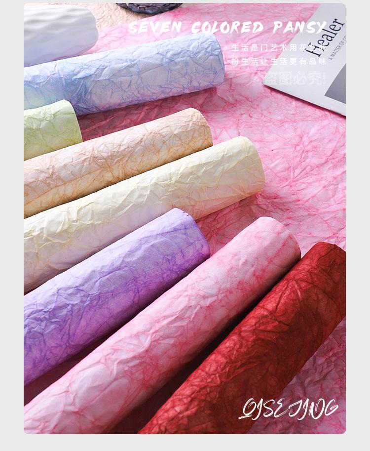 Papel de regalo con diseño de pensamiento de siete colores, agrietado, para envolver flores, regalo de flores, arte floral, material de envoltura con sentido avanzado, papel de regalo para flores