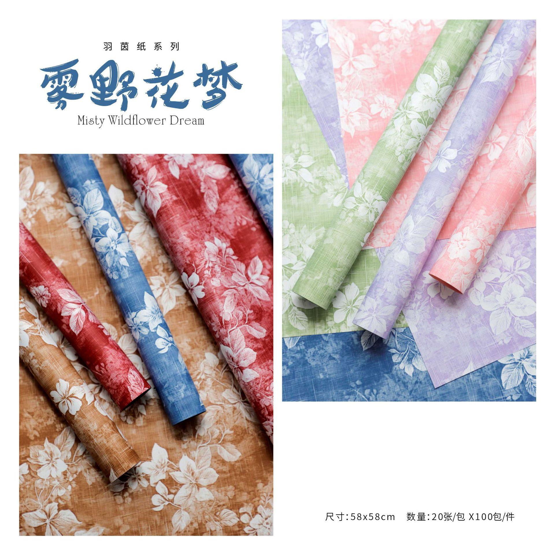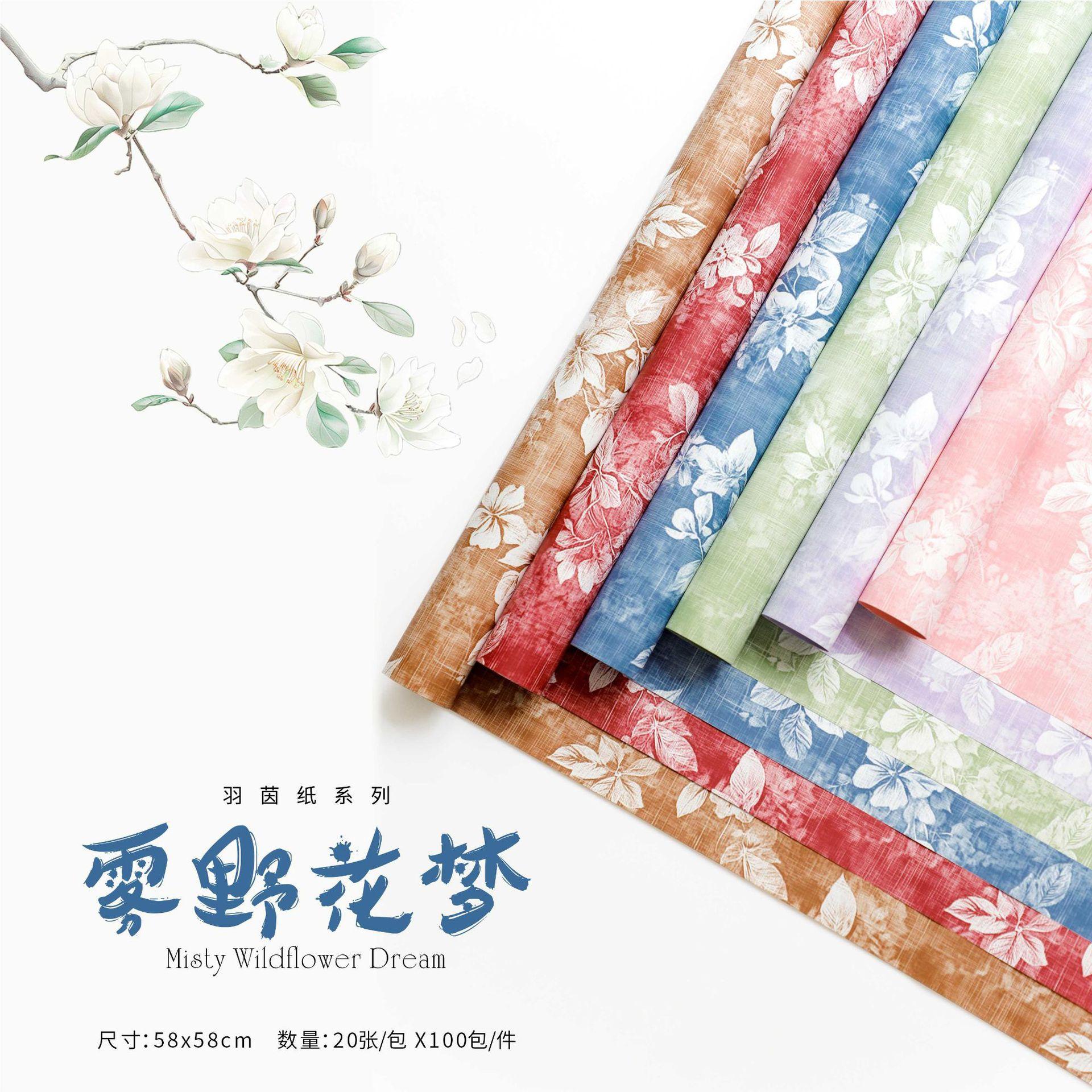 Papel de pluma impermeable estilo chino serie Yin niebla flor silvestre sueño ramo embalaje de regalo papel para envolver flores papel de envolver