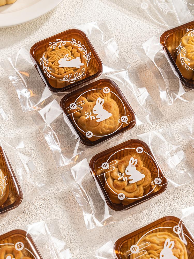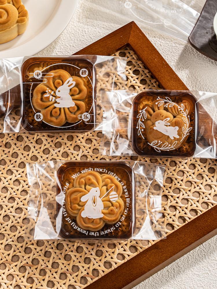 Bolsa de embalaje de conejo simple (2025), para el Festival del Medio Otoño, para pastel de luna, máquina selladora, bolsa transparente con forma de corazón, piel de hielo y yema de huevo crujiente.