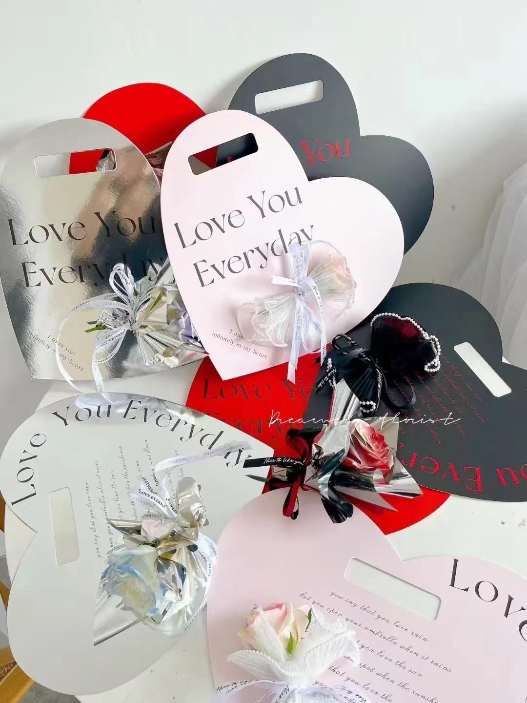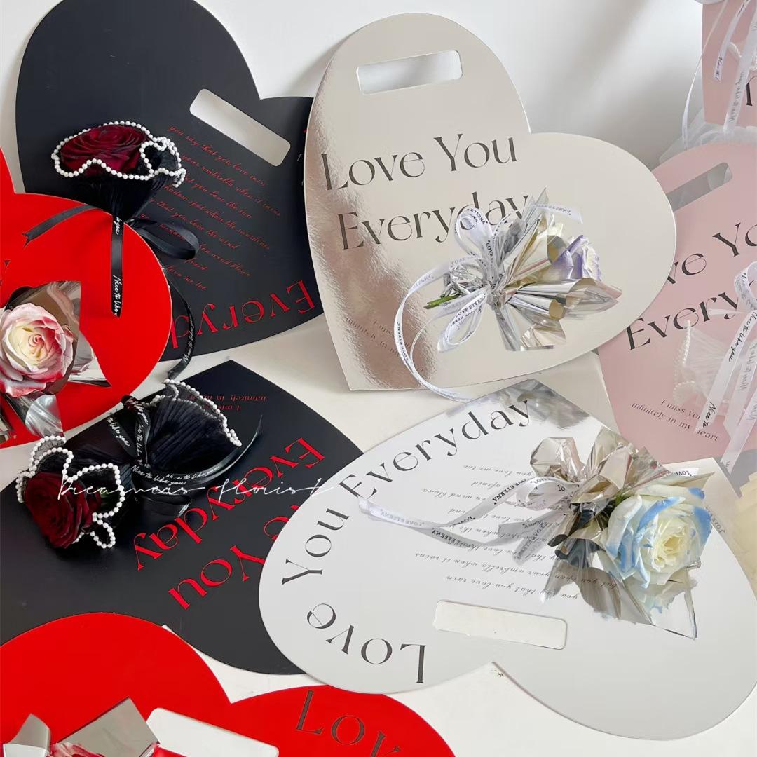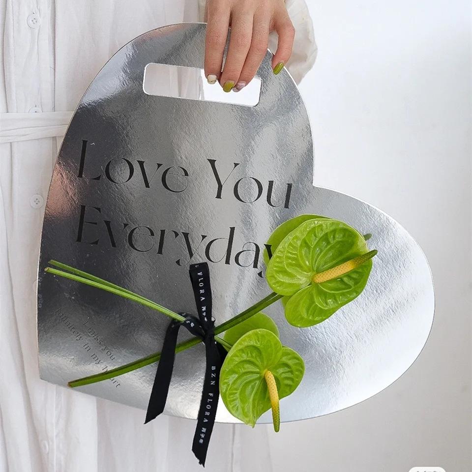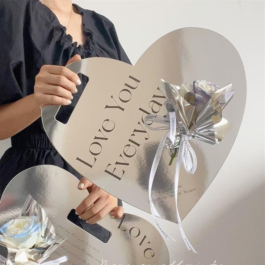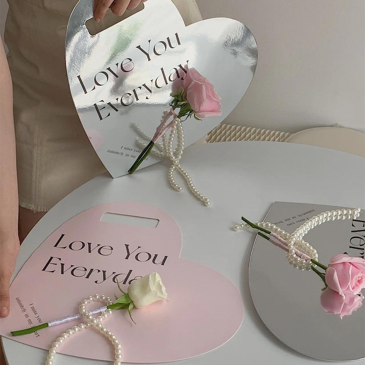 Caja de Empaque para Flor Rosa Individual Bolsa de Mano para Flores Bolsa para Flores con Espejo Caja para Flores de San Valentín Forma de Corazón