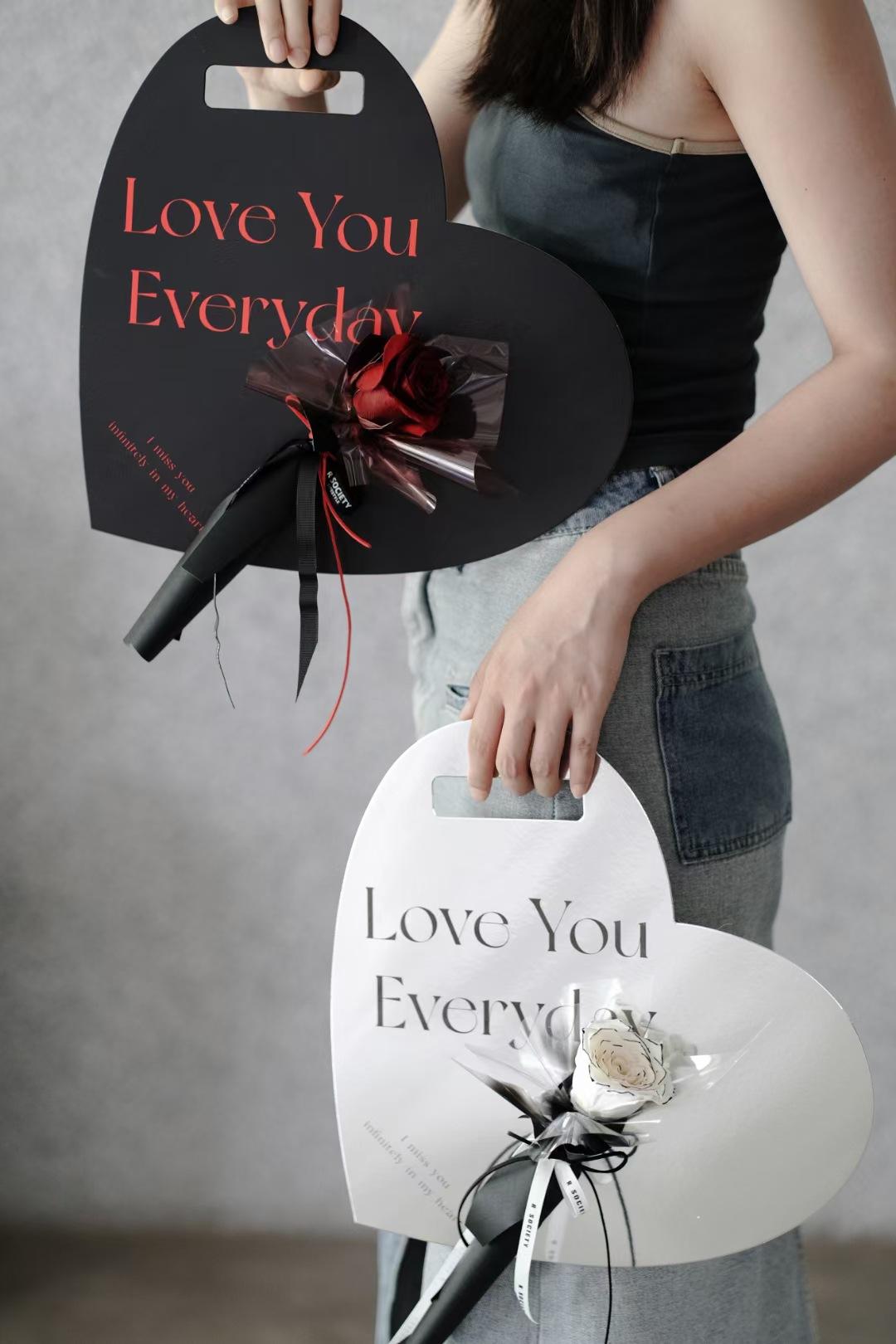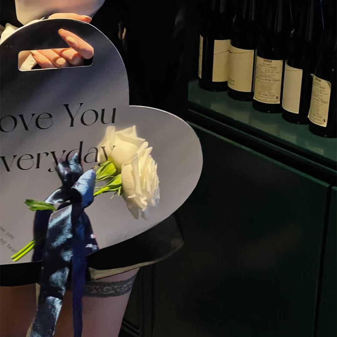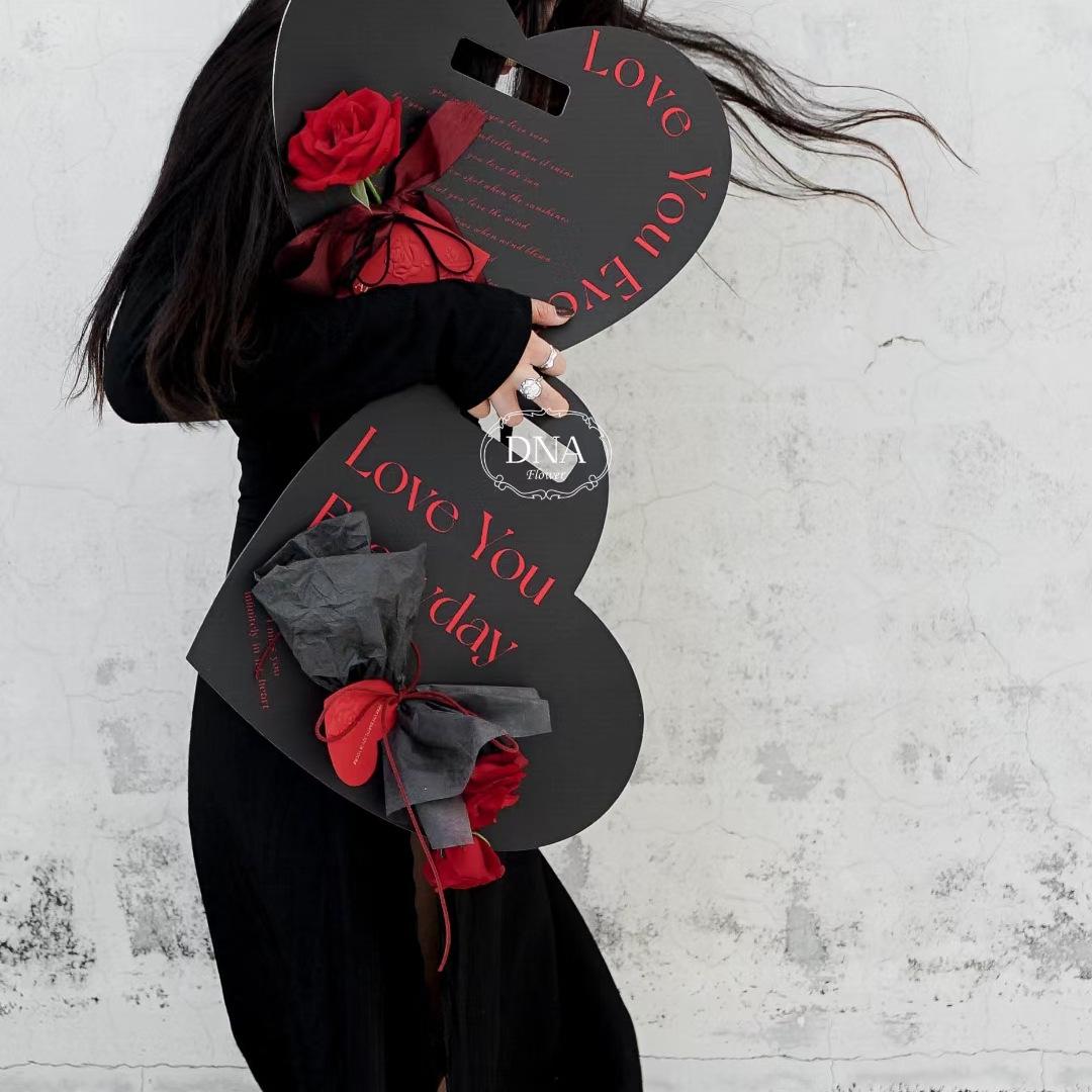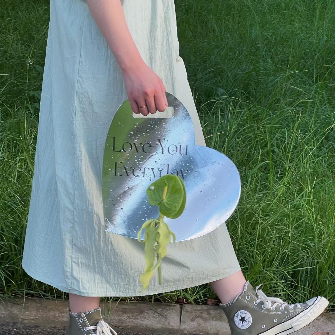 Caja de Empaque para Flor Rosa Individual Bolsa de Mano para Flores Bolsa para Flores con Espejo Caja para Flores de San Valentín Forma de Corazón