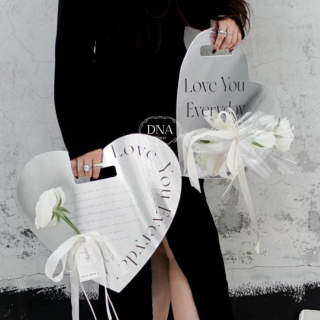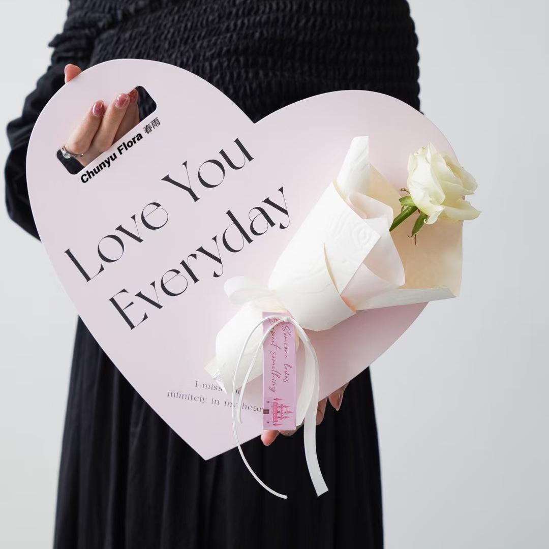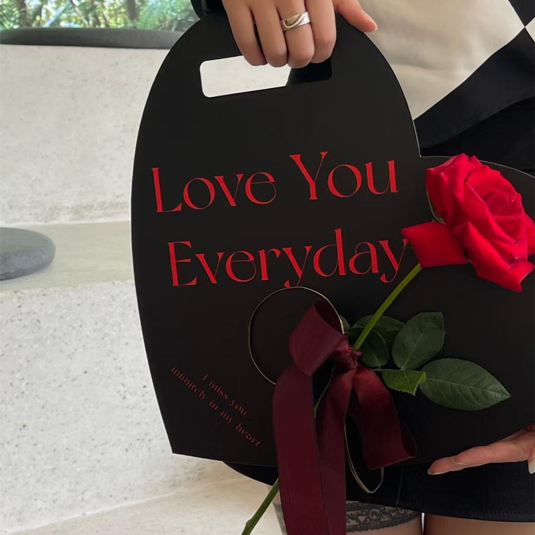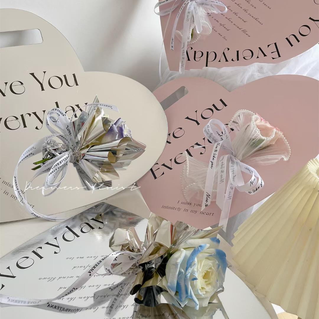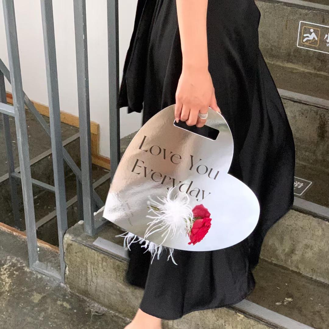 Caja de Empaque para Flor Rosa Individual Bolsa de Mano para Flores Bolsa para Flores con Espejo Caja para Flores de San Valentín Forma de Corazón